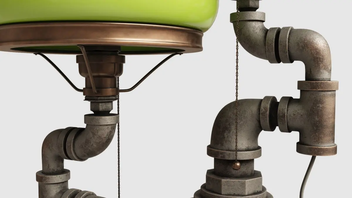 Steampunk industrial style table lamp. Ideal for decorating interior spaces such as galleries or offices.