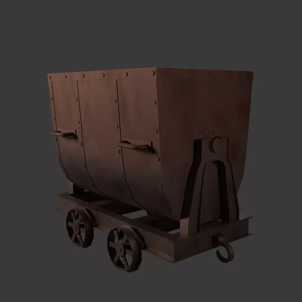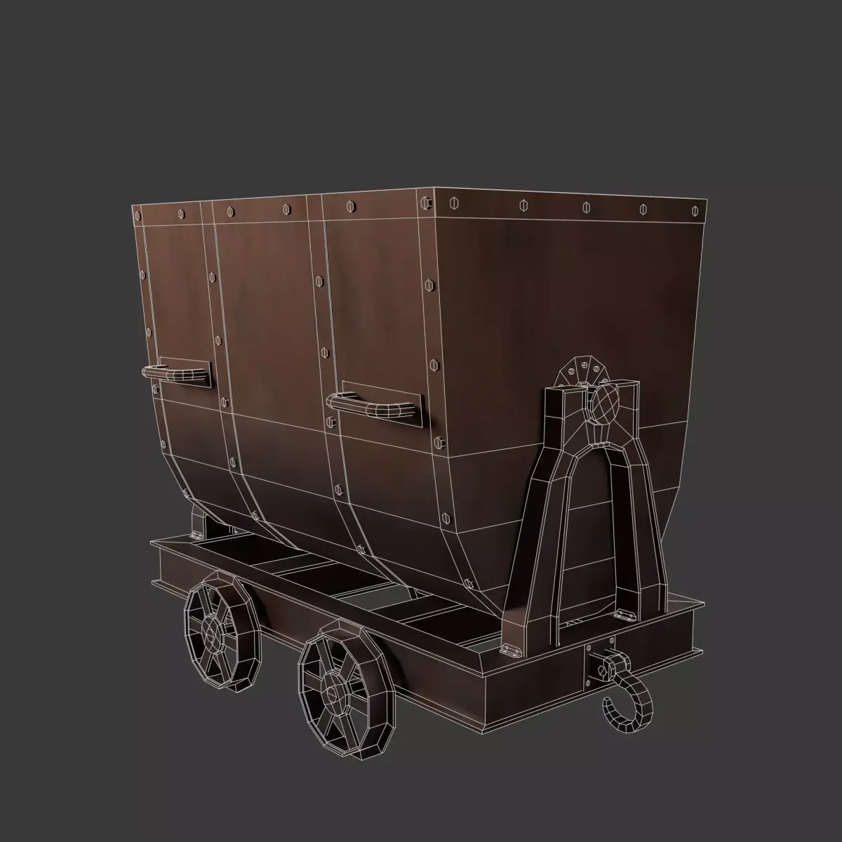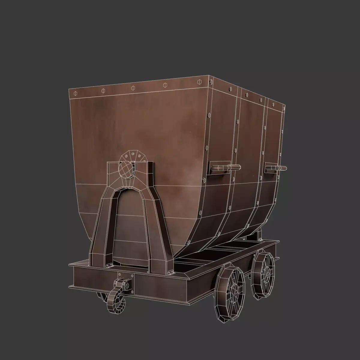 This metal mine cart will perfectly complement any scene. Cart can be tilted and the wheels spin if animation is desired. The model is detailed and highly optimized, making it suitable for a wide range of uses, It is particularly well suited for creating video games.