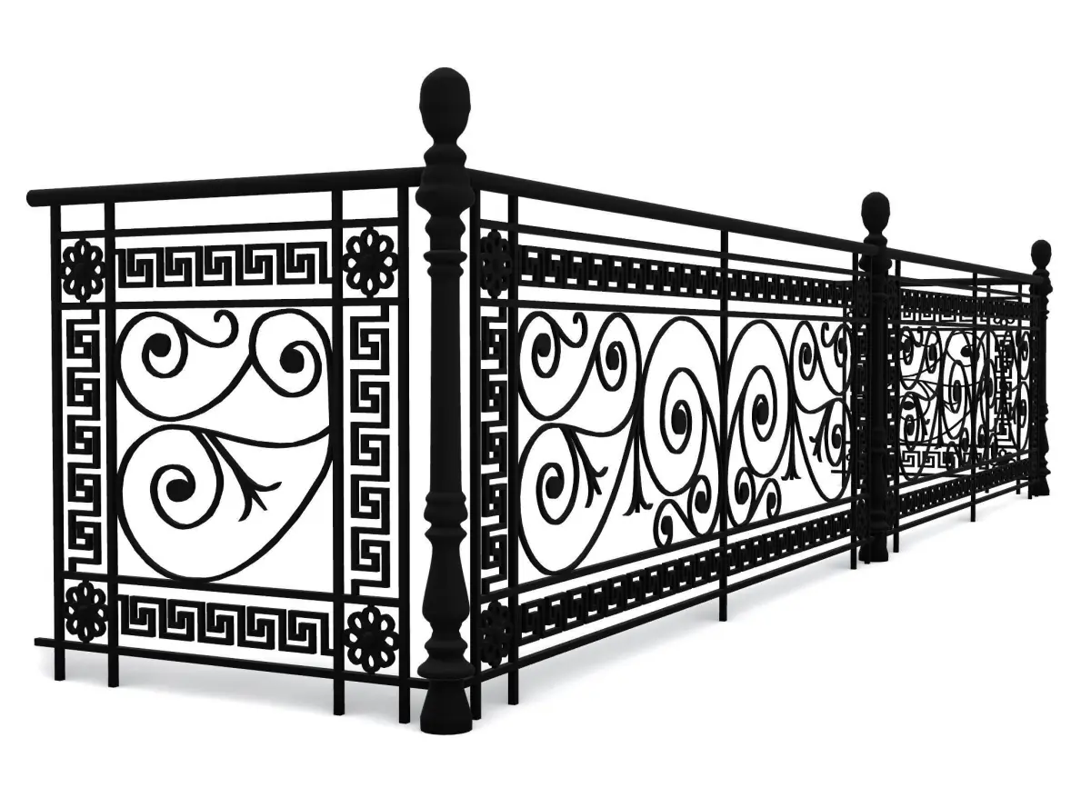 Metal Neoclassical Railing, essentially an old school neoclassical balcony Forged Fence. It was often put in neoclassical architecture balconies. You can separate it into front and side pieces so you can arrange it as you want inside your project.
