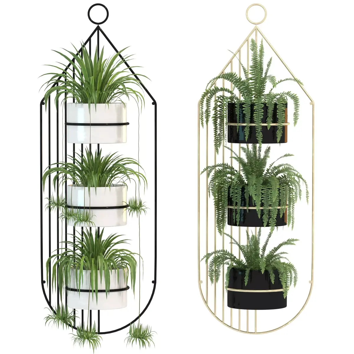 English Description (for 3dsky):Metal Plant Set 04 – A stylish decorative wall-mounted plant holder set featuring modern metal frames and realistic potted greenery. The set includes two vertical plant stands with elegant black and gold finishes, perfect for contemporary interiors. Each frame holds three pots with detailed foliage, making it suitable for living rooms, dining areas, offices, or any modern decorative environment. Optimized for both V-Ray and Corona render engines, provided in FBX and OBJ formats for maximum compatibility.