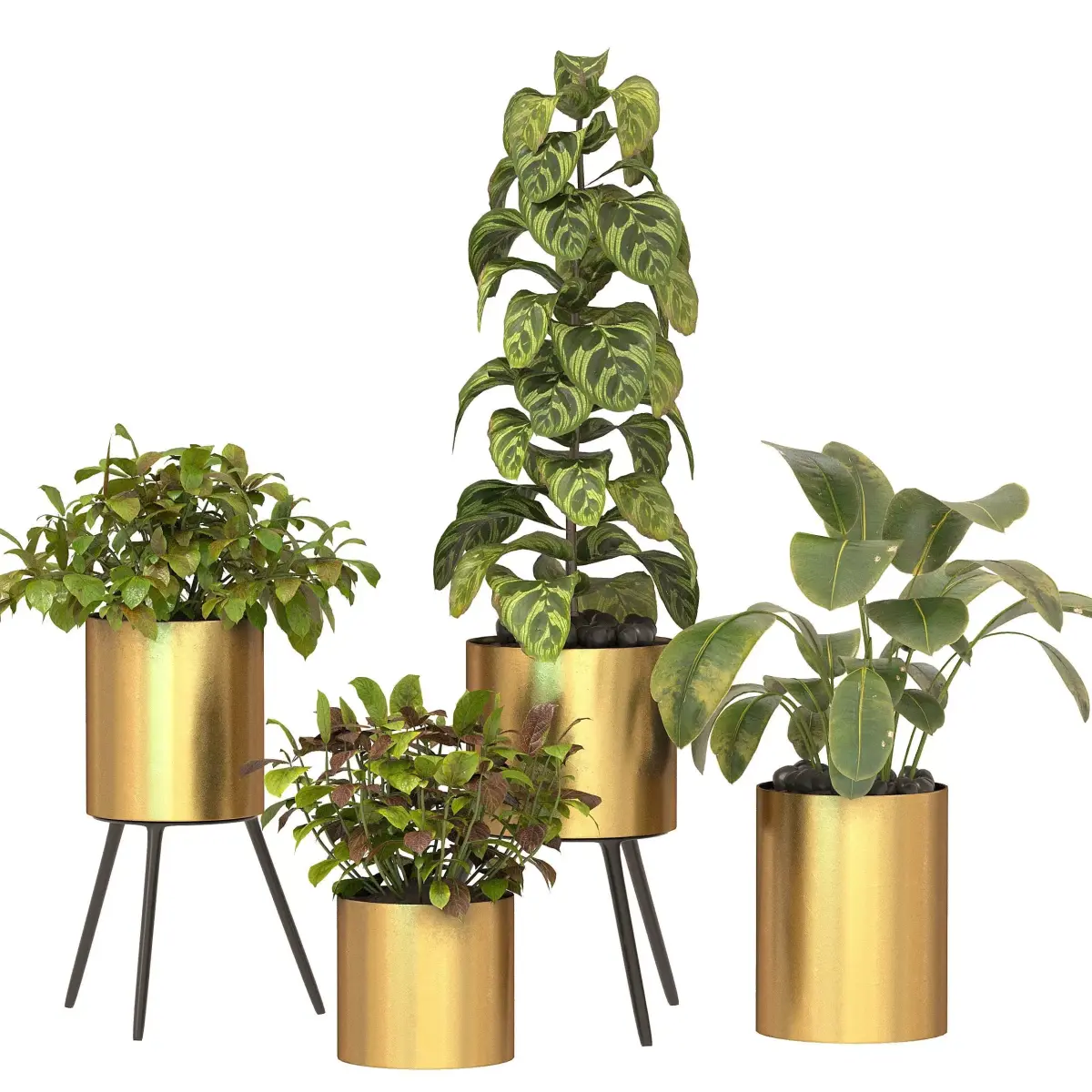 Description:Metal Plant Set 05 – A stylish collection of indoor decorative plants presented in elegant gold metal planters. This set combines lush green foliage with luxurious golden finishes, making it perfect for contemporary interior designs, lobbies, offices, and living spaces. The model is fully detailed, lightweight, and optimized for both V-Ray and Corona render engines. Available in FBX and OBJ formats.