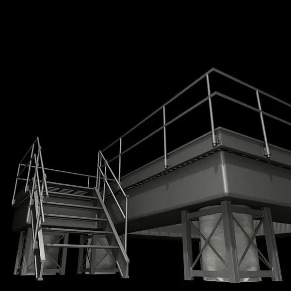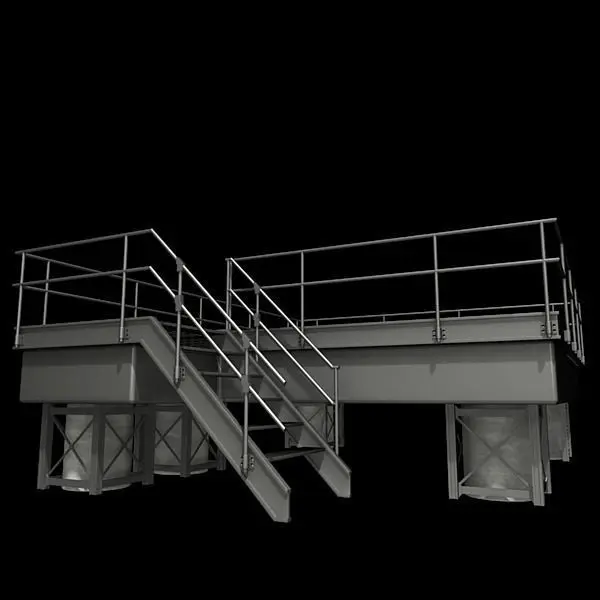 A highly detailed industrial platform with a grated metal floor.
