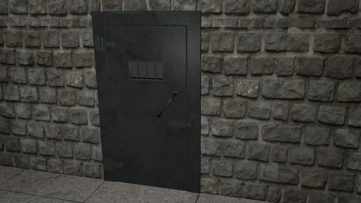 Lowpoly metal door.Door opens - pivot point is on hinge