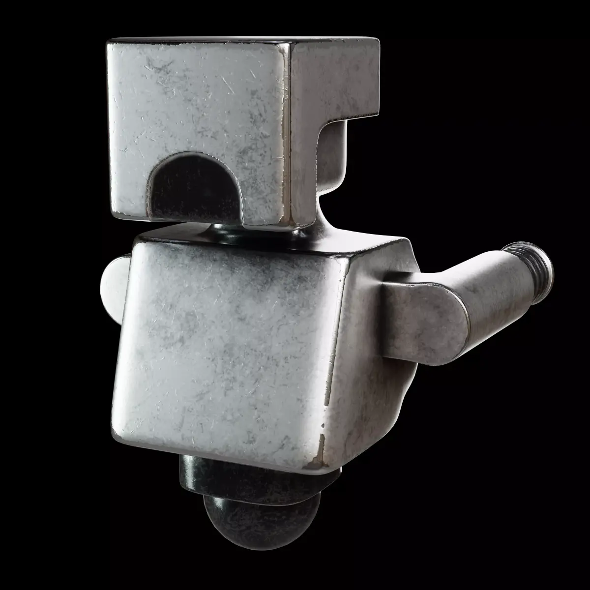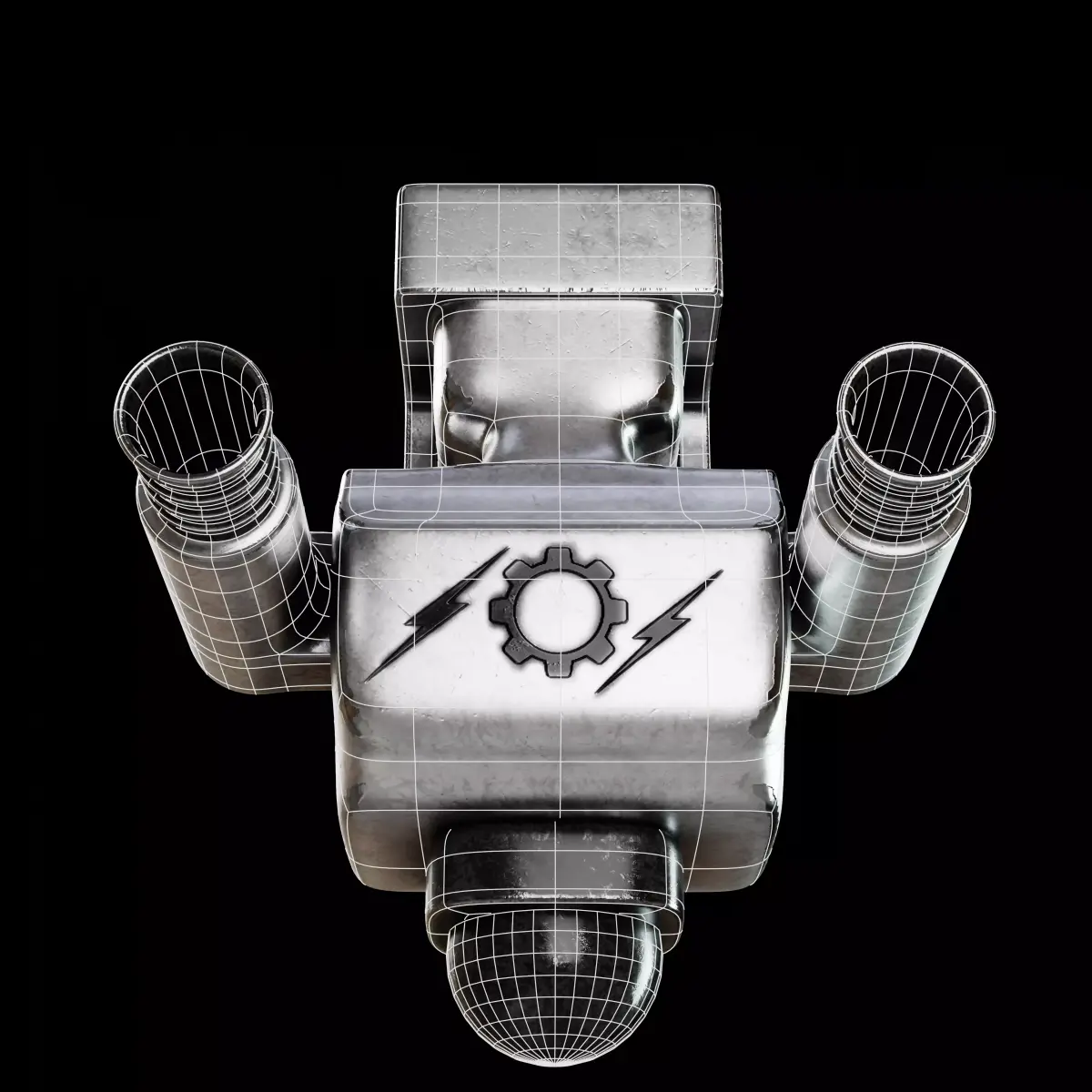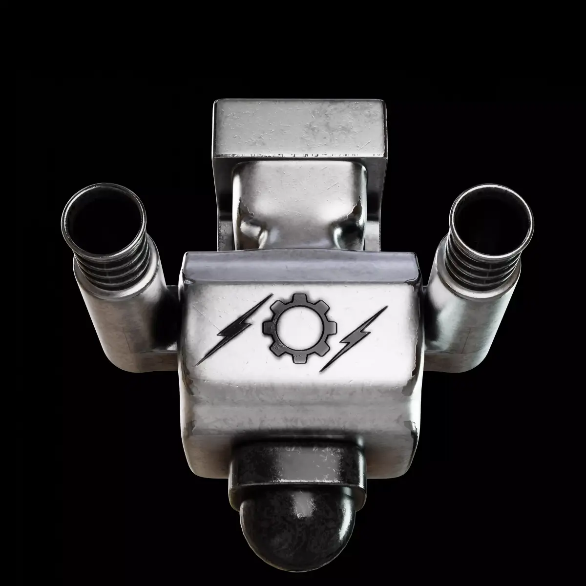 This stylized metallic robot features a sleek geometric design with realistic worn metal textures, making it perfect for games, animations, cinematics, and sci-fi scenes. Created in Blender and rendered with Cycles for high-quality, detailed results.