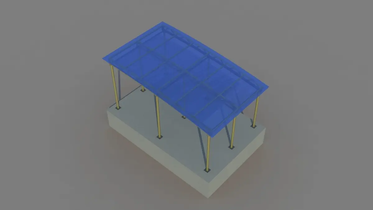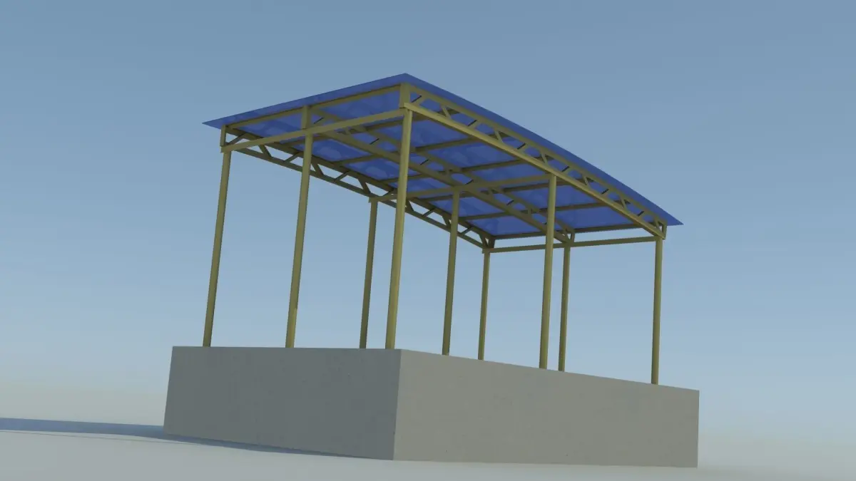 Metal shed construction with polycarbonate roof.