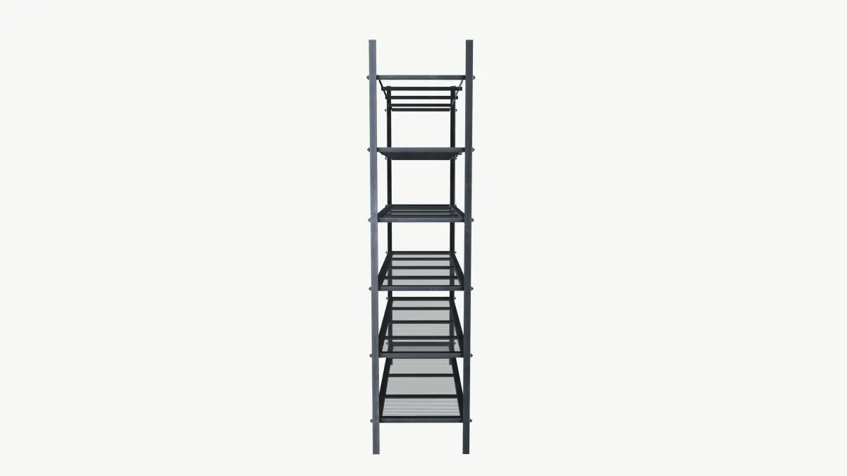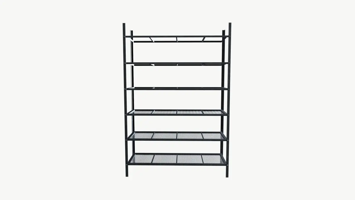 - Elevate your storage solutions with our sleek black metal shelf, designed to seamlessly blend functionality with modern aesthetics.