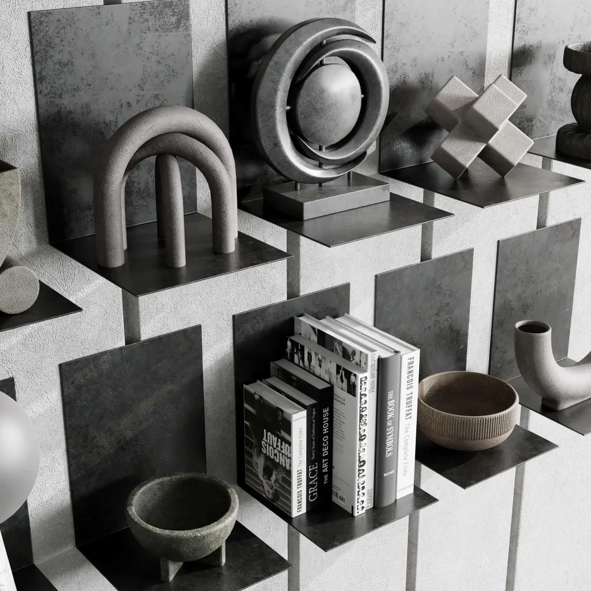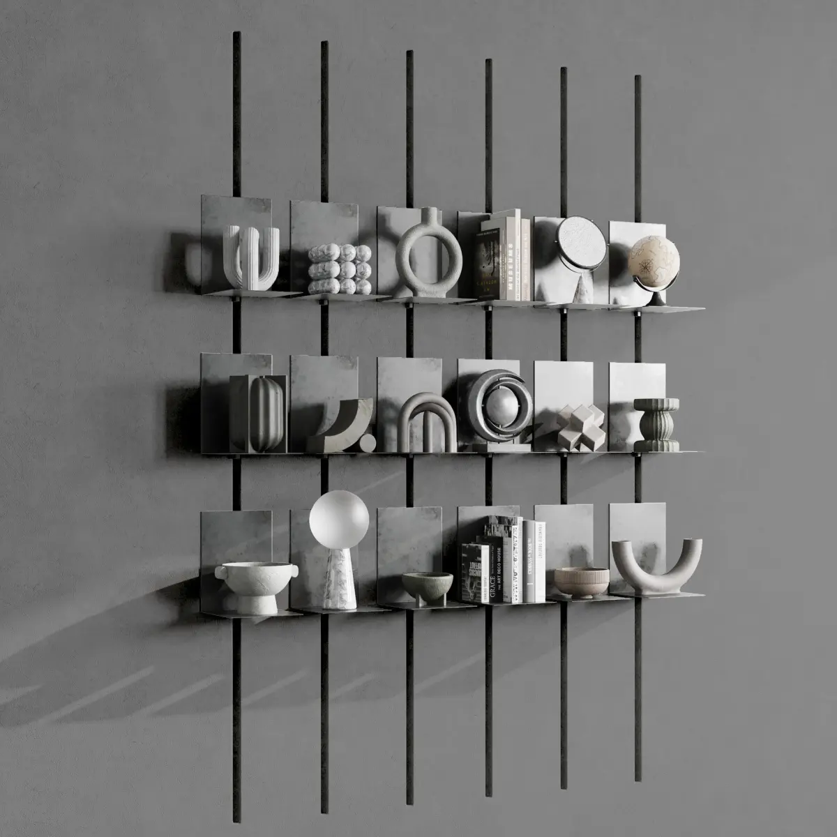 Metal Shelves Decorative With Book - metal RackFile 3dmax 2015 vray_coronaexport file obj fbx