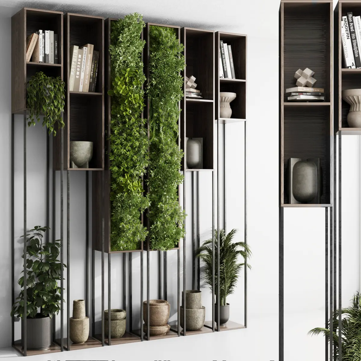 Metal Shelves Decorative With Plants and Book - Wooden Rack 04File 3dmax 2015 vray_coronaexport file obj fbx