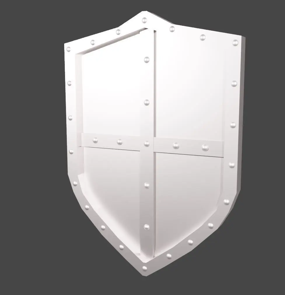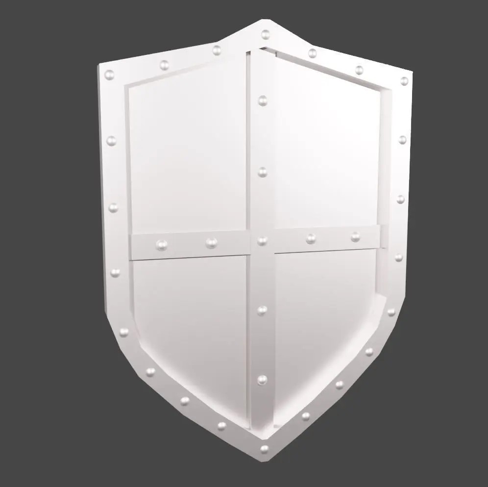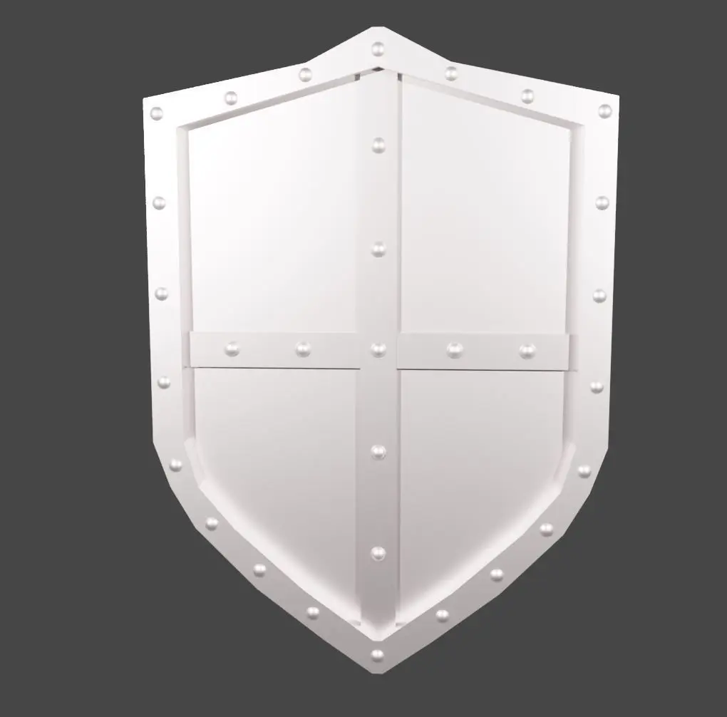 A metal shield with rounded caps surrounding the outside and braces in the center-This pack contains .fbx, .stl, .mtl, and .blend files-The item was created in Blender. Materials and textures are generated procedurally and are accessible within the shader settings