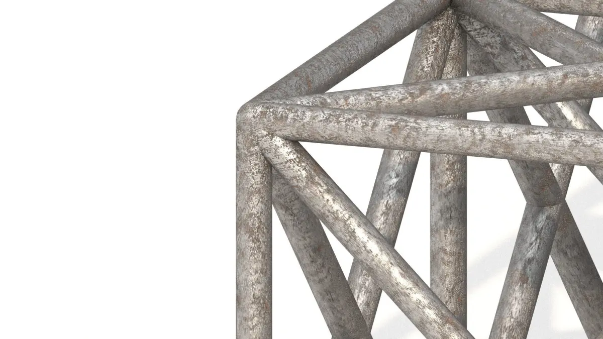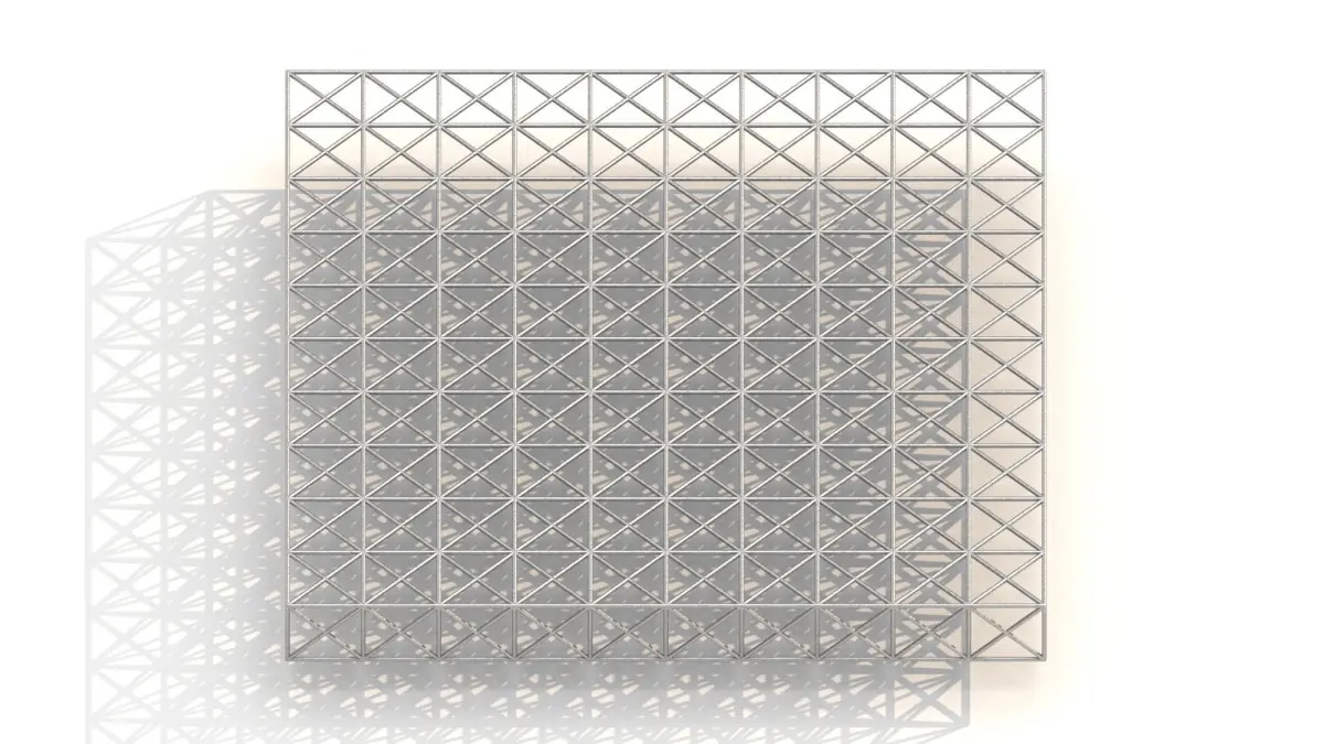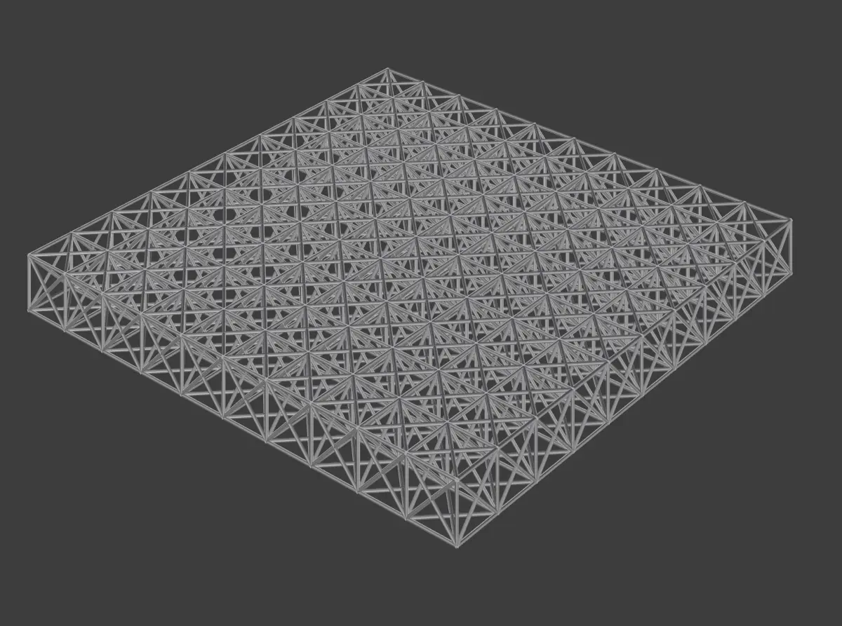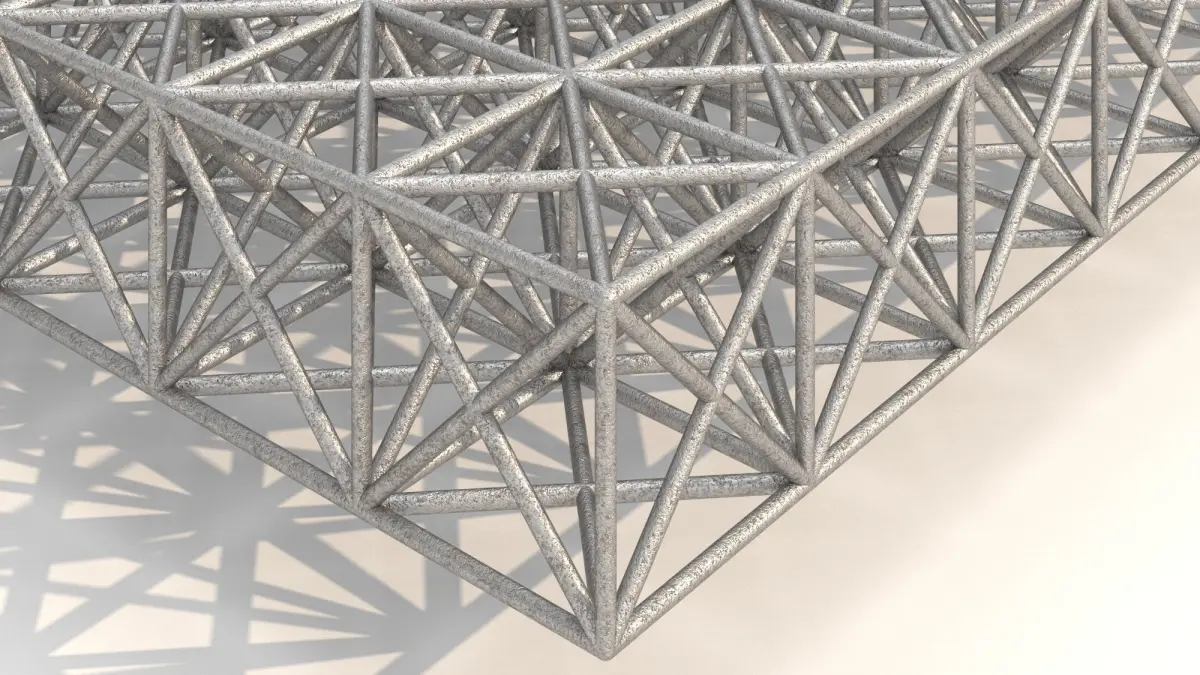 This is a cubic metal spatial structure used typically for roofing big spaces. It is a heavy-duty structure made of 1.6x1.6x1.6m cubes. The cross-section of its metal part is 0.1m.