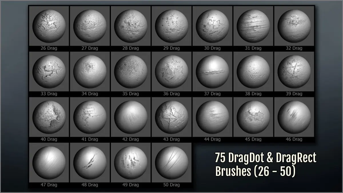 DragRect brushes that you can click and drag to set the position and size of the detail. DragDot brushes, in which you decide the size of the detail, and then drag to position it with precision.Special Draw brushes that have settings to allow you to paint the details in an artistic way. This way they have direction and uniqueness, and look natural, as they will impress your personal artistic touch. Spray Brushes that put randomly placed spots of the brush over the shape. The purpose of these is to make them look more chaotic and random. COMPATIBLE WITH: ZBrush 2021.6.6 and up (updating to 2022.0.3 is free and easy).
