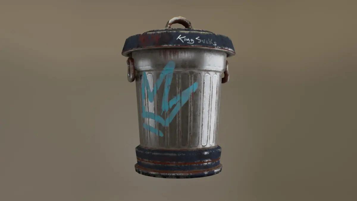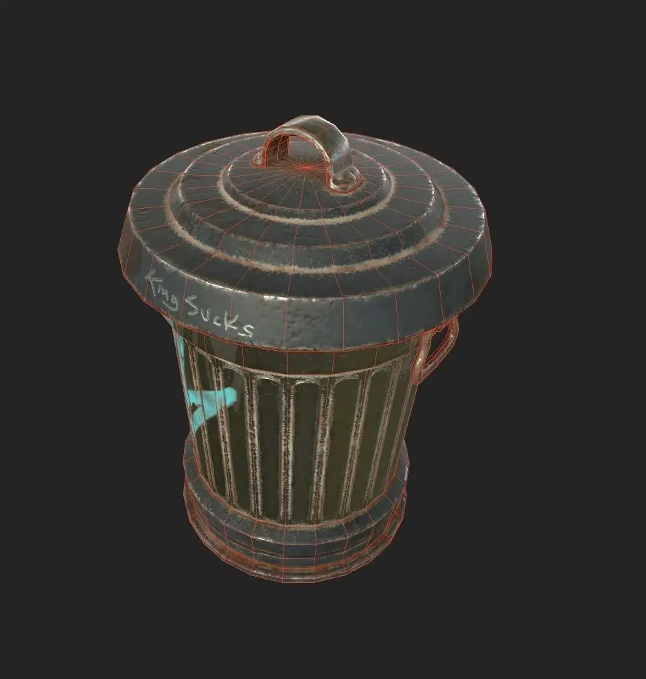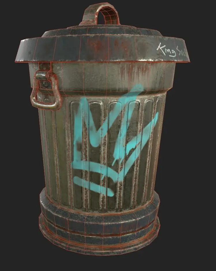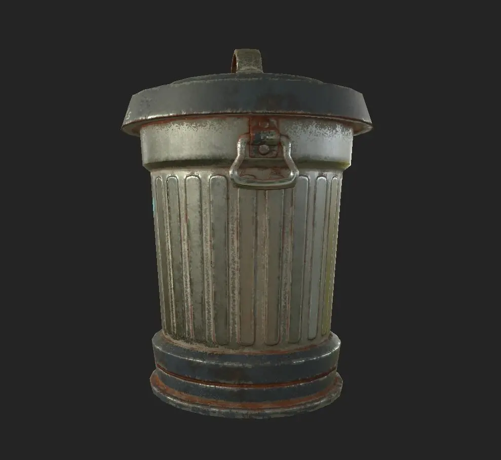 3D Low Poly game ready model of a metal Trash Can . Clean, used and worn textures included: