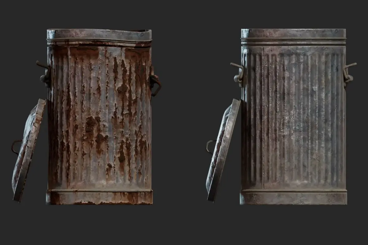 Textured in Blender: The professional quality texture created with PBR style textures provides realism and authenticity to your project. The intricate details and depth of texture make this trash can a unique piece.