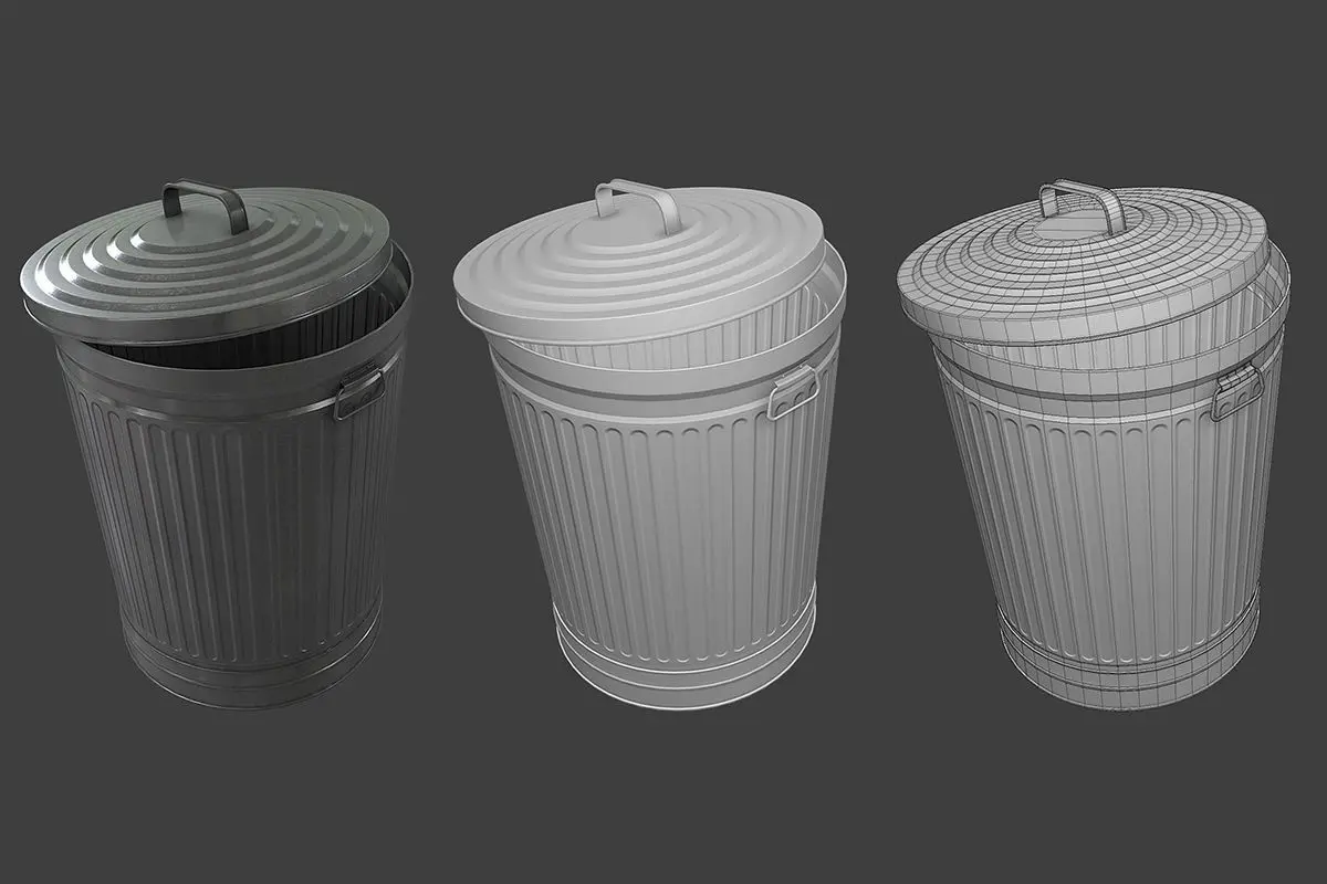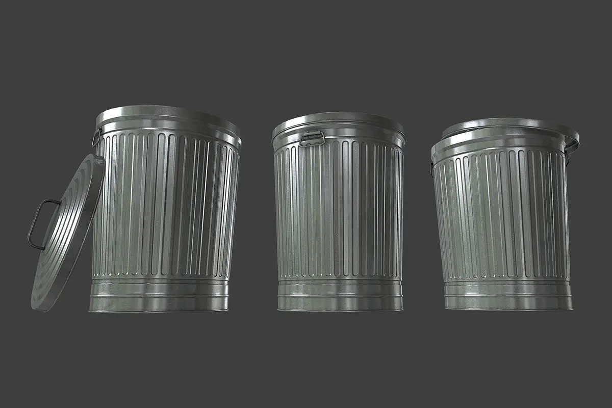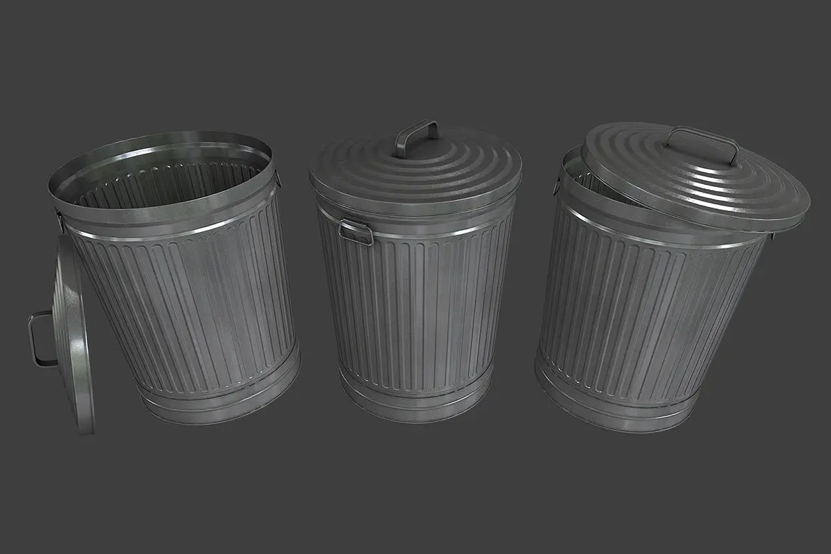 Textures Size: trashCan (diffuse, metalness, roughness, normal, ambient occlusion) - 2048 X 2048;