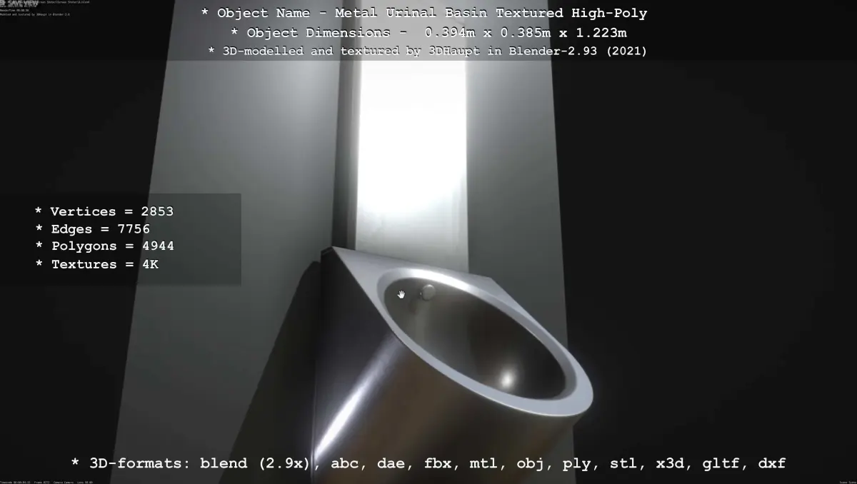 BLEND (Blender, filesize: 192 MB), OBJ (OBJ, filesize: 116 MB), FBX (Autodesk FBX, filesize: 116 MB), GLTF (glTF, filesize: 134 MB), USDZ (USDZ, filesize: 1.1 MB), ABC (Alembic, filesize: 116 MB), DAE (Collada, filesize: 116 MB), DXF (DXF, filesize: 116 MB), STL (Stereolithography, filesize: 116 MB), TEXTURES (Textures, filesize: 116 MB), PNG (PNG, filesize: 116 MB), JPG (JPG, filesize: 116 MB), PLY (Ply, filesize: 116 MB)