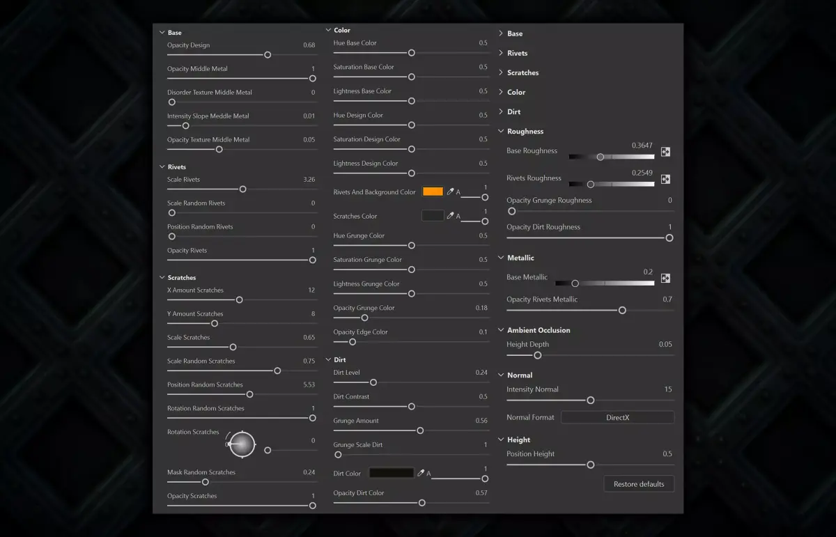 With the ability to change all settings and parameters in the SBsar file With excellent ability to change all kinds of settings in the Sbsar file:Because there were many parameters that can be changed, all the parameters are placed in the photo