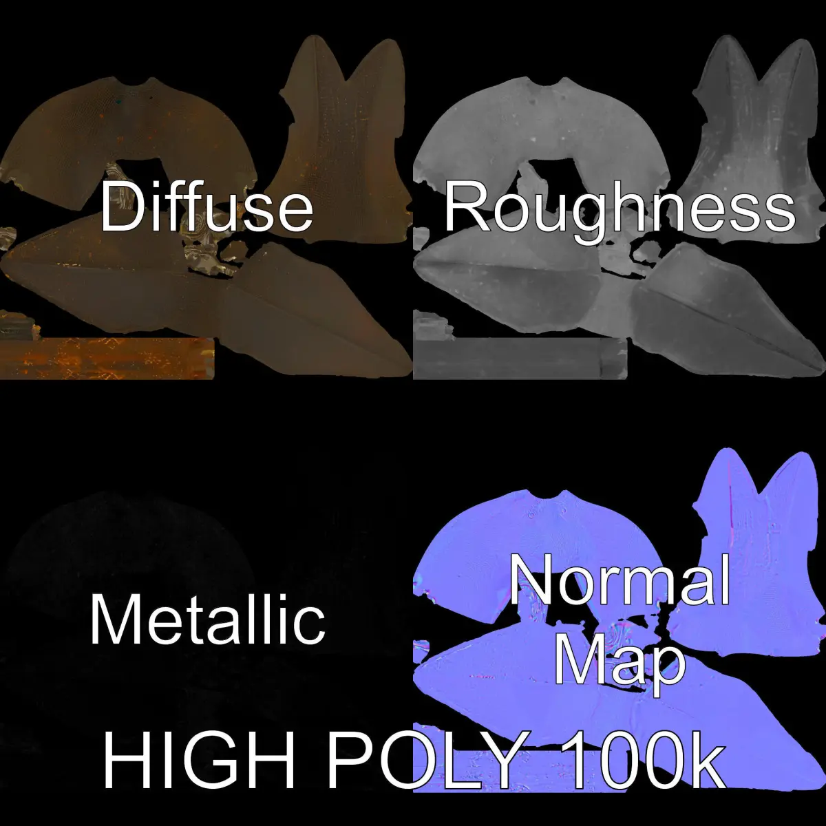 This Metallic Bird Sculpture Model Pack is meticulously crafted with three levels of detail suitable for diverse applications. Each model comes in low-poly (1000 triangles) for mobile use, middle-poly (10,000 triangles) for environment integration, and high-poly (100,000 triangles) for production rendering. Whether for VR experiences, educational animations, or virtual museum exhibits, these models are optimized for both real-time rendering in Unity and Unreal and high-quality output in 3ds Max or Blender. The PBR textures, including Diffuse, NormalMap, and reflection/roughness/metallic maps, are 4096*4096 in size, enhancing realism and compatibility across modern engines. The models feature precisely unwrapped UVs with no overlaps, ensuring a seamless texturing process.