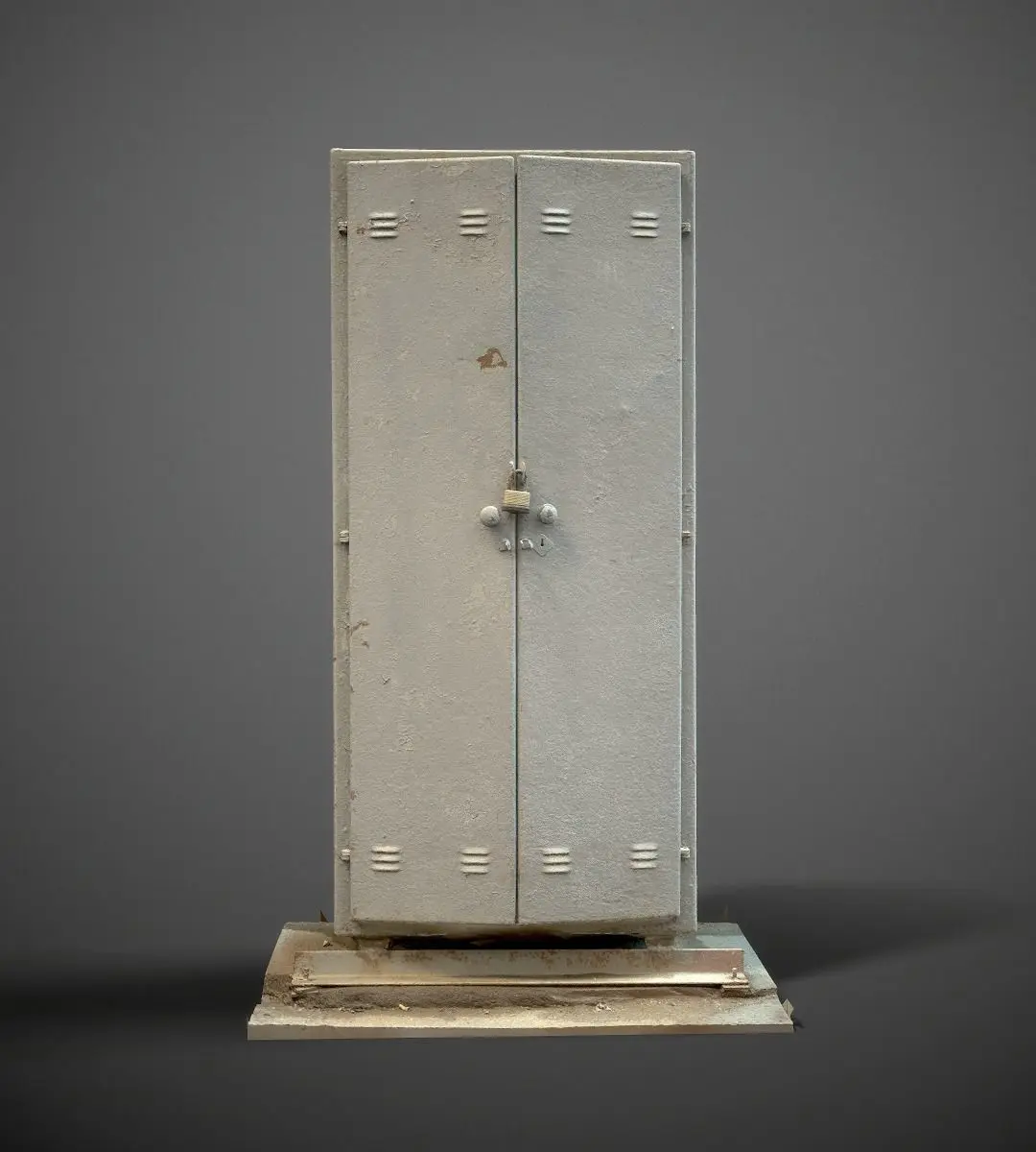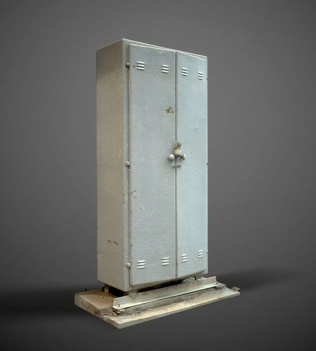 Photorealistic detailed 3d scanned model of an city metallic cupboard.