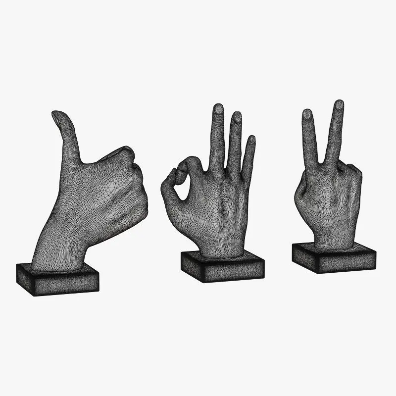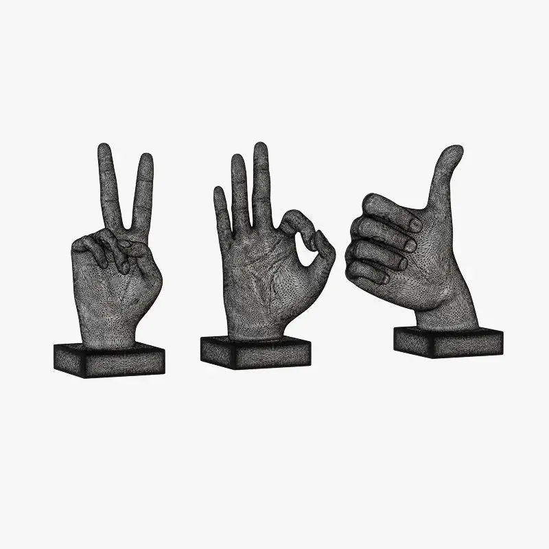 3ds Max 2010. V-Ray 2.40.03. File formats stl, fbx, zpr, obj. Metallic Hand 3 Piece Figurine Set. Model after Decimation Master. System units mm.