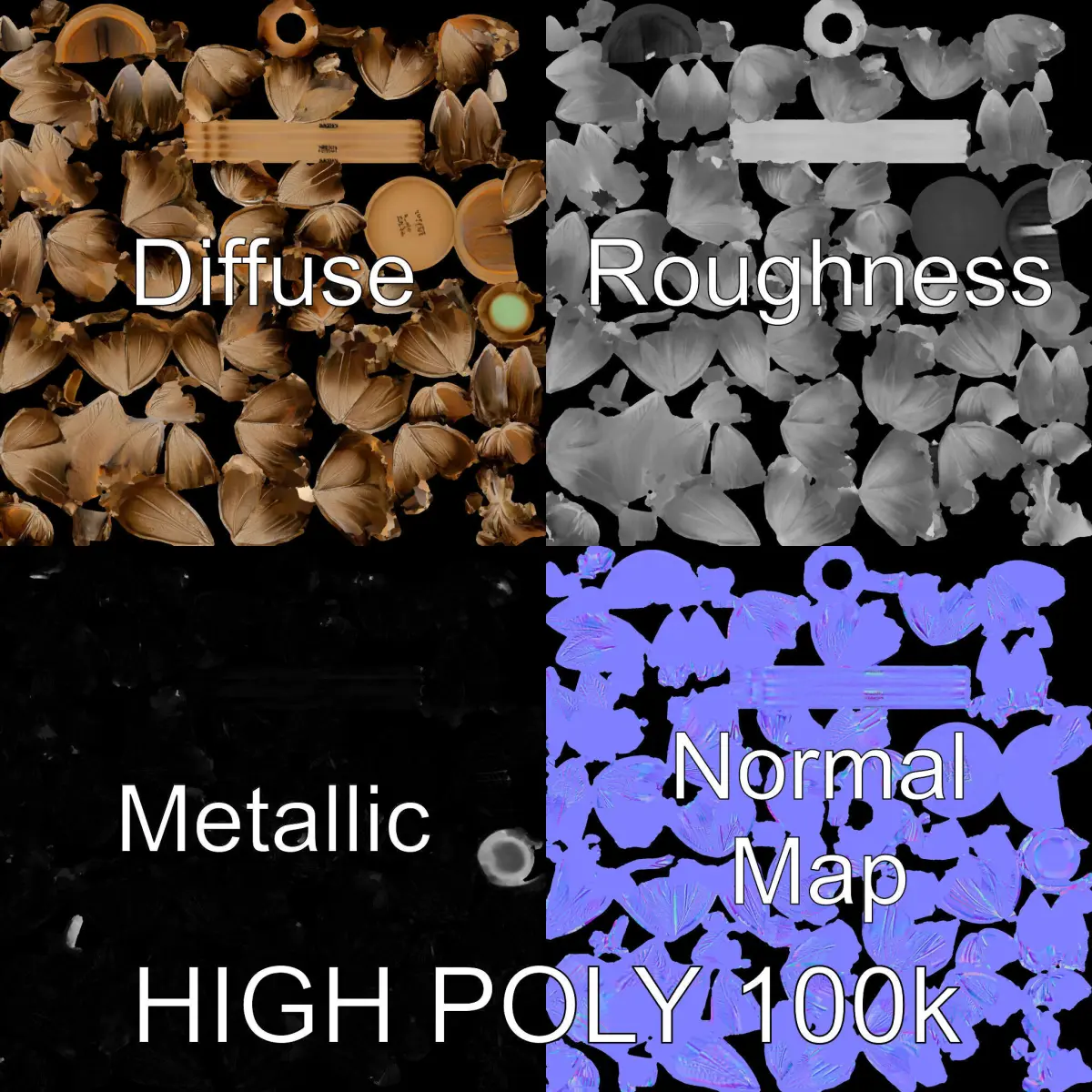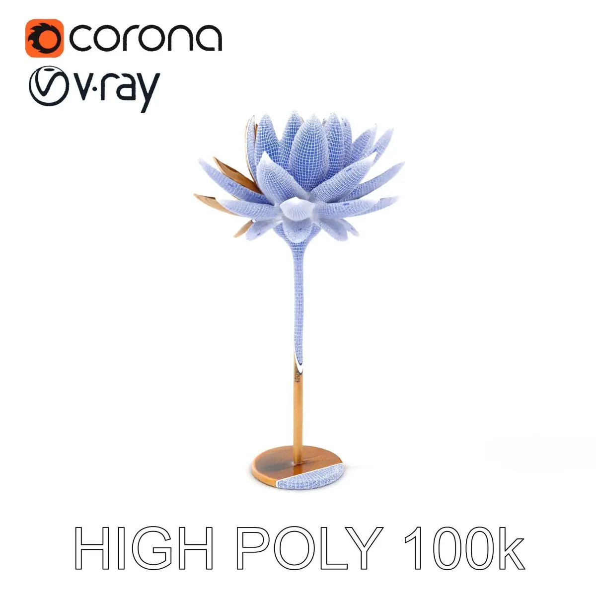 This 3D model of a metallic lotus sculpture features three levels of detail: low-poly for mobile, middle-poly for environments, and high-poly for production rendering in platforms like 3ds Max, Maya, and Blender. Its elegant design makes it ideal for use in architectural visualizations, interior decorations, and art concept renderings. The PBR textures, including Diffuse, NormalMap, and reflection/roughness/metallic, ensure compatibility with modern rendering engines. All models are accurately unwrapped with no overlapping UVs, featuring 4096*4096 texture resolution. The first image is the reference used for creating the 3D model. It is important to carefully evaluate the quality of the model by examining the preview images that display the topology and polygonal mesh. These previews (WIRE and WEB 3D Preview) clearly demonstrate how accurately the model matches the original reference and how well the geometry has been executed. Please like and comment on the model if you enjoyed it!