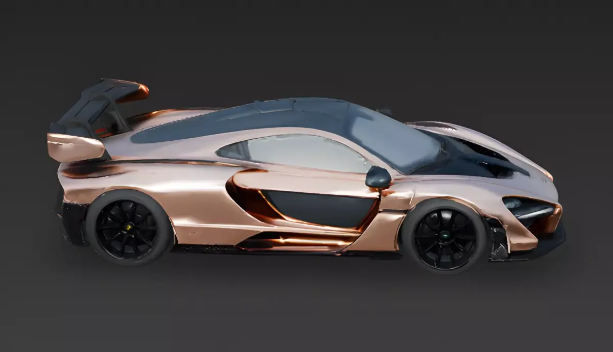 Rose Gold FinishThe body is finished in a stunning glossy metallic rose gold paint. This reflective surface reacts dynamically to lighting, highlighting the vehicle’s complex curves and recessed panels, giving it a premium, customized look that stands out from standard factory colors.