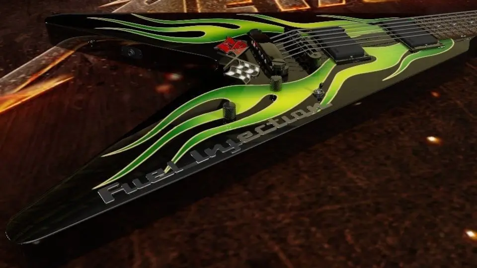 Metallica - James Hetfield ESP JH-1 Green Flame V Guitar 3D model