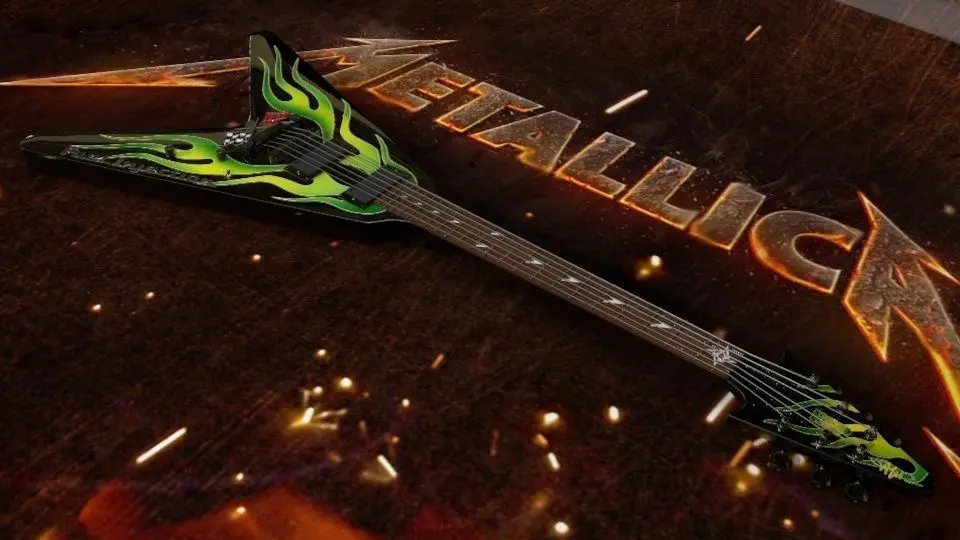 HomeCatalogMetallica - James Hetfield ESP JH-1 Green Flame V Guitar 3D model