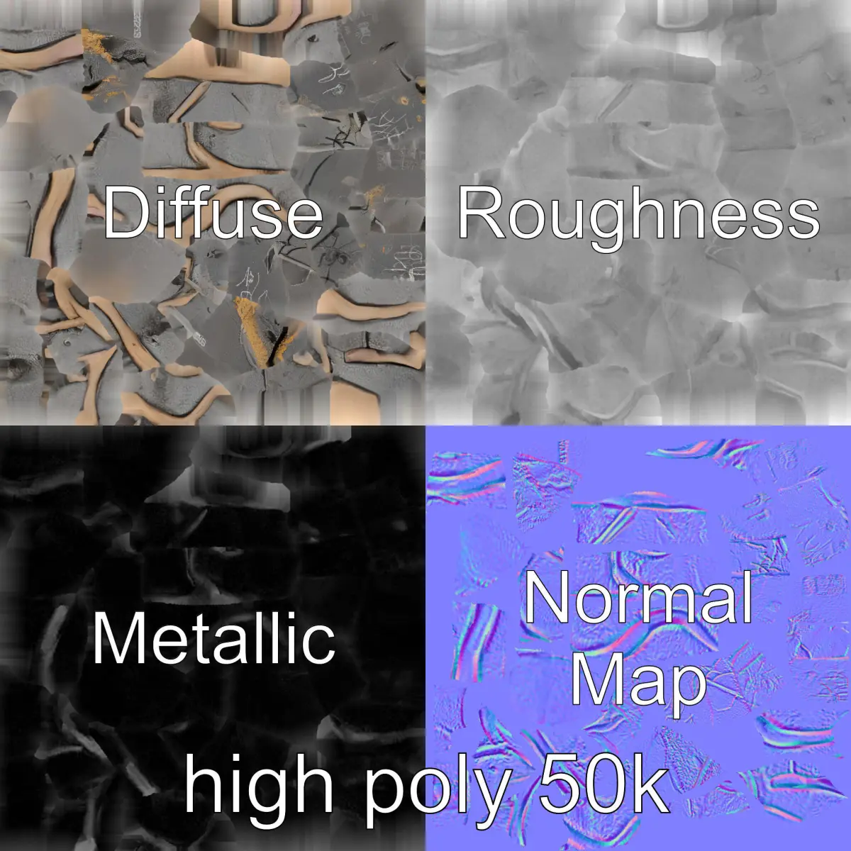 The model's textures are PBR with Diffuse, NormalMap, and reflection/roughness/metallic maps, ensuring compatibility with any modern rendering engine. All textures are 4096x4096 in size. Each model is accurately unwrapped with no overlapping UVs, ensuring top quality presentation.
