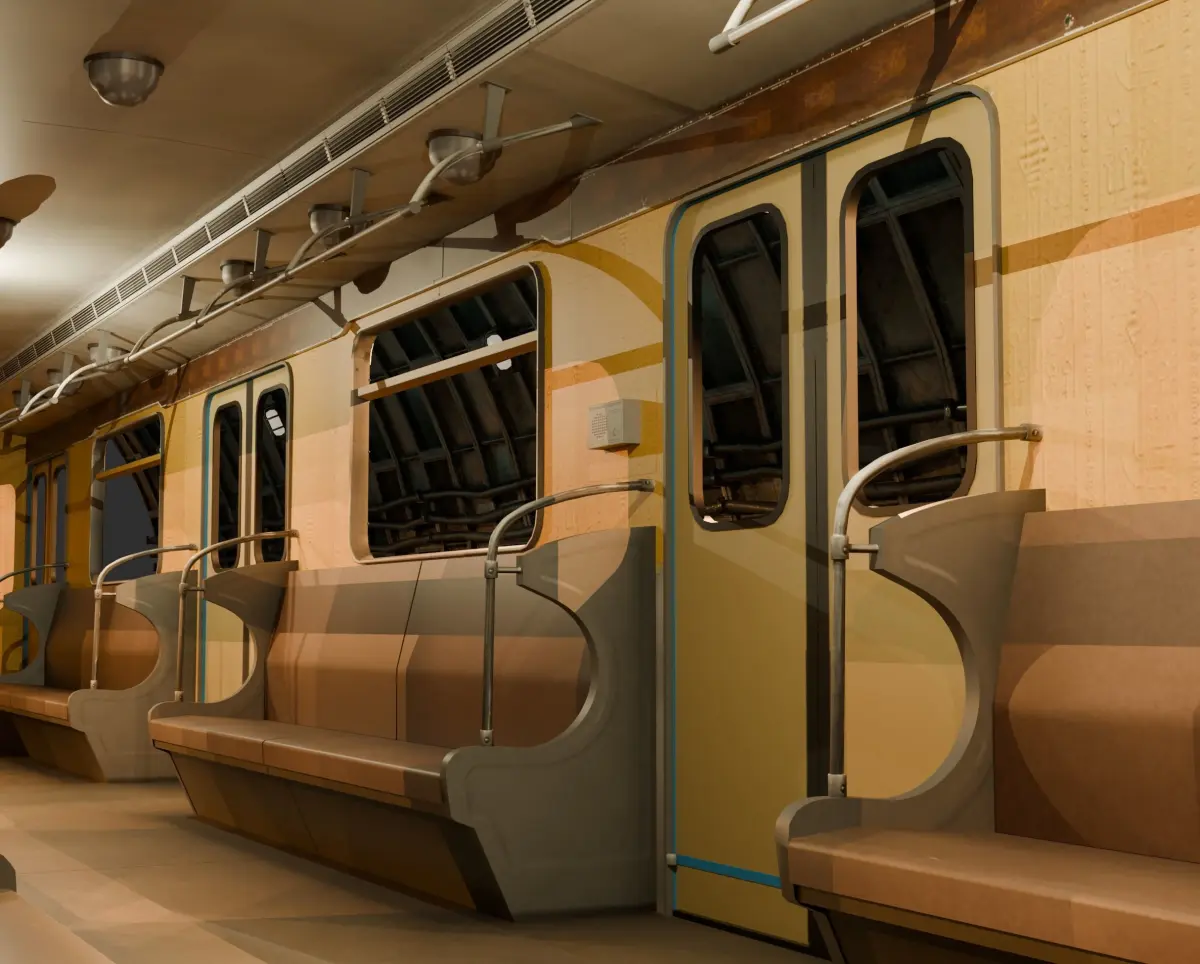 Metro Kyiv subway for 3d print and etc. Train is made in USSR. You can customize in your opinion for your interests. Ezh3 is a type of electric metro cars produced at the Mytishchi Machine-Building Plant and is a further development of the Ezh-type cars. These cars differ from their predecessors in updated electrical equipment with an automatic speed control system, a new control panel in the driver's cab and changes in the design of the seats[1]. In everyday life, this type (as well as the basis for this type of Hedgehog) of cars is often called Hedgehogs.