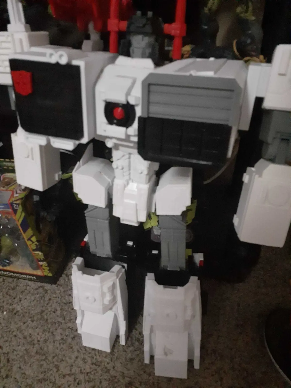 Metropex (not metroplex) G1 transformer. Fully functional and is able to transform to tank mode and city mode. comes with shoulder cannon and sword. I highly advise using PETG filament on moving parts. For the head plate you can use a small spring either from a clickable pen or any other small spring thats strong enough to eject the head. I just added a new sword and new turrets for the legs. When fully built stands at around 2 foot tall.