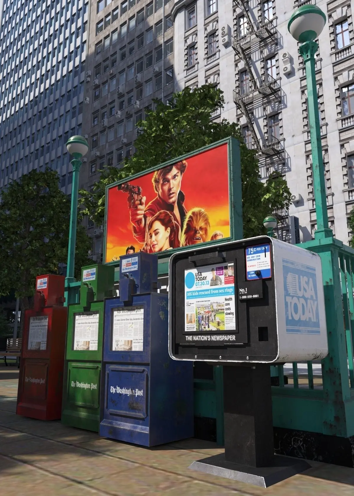 ====Most detail elements were made on substance painterSubway entrancesSubway elevatorFire hydrantsTraffic lightsstreet lightsBusstopmailboxBillboard /3 Rooftop air conditioner /6Water tank /3 Dumbster / 2 Phone boothNewspaper box / 3 Outside Metal Fire Escape Stairs /4 Rooftop barn /6 Wall air conditions / 8 Domesky