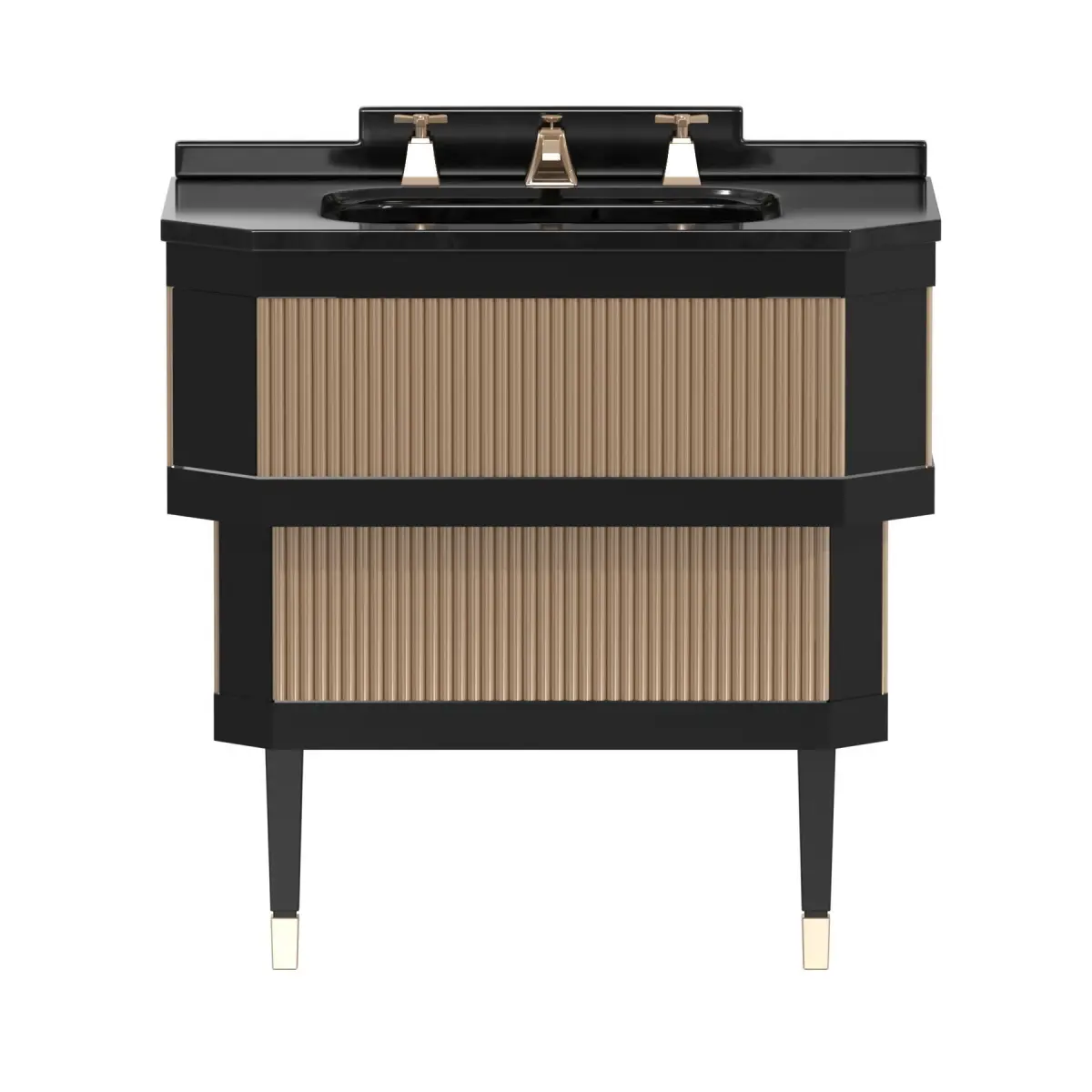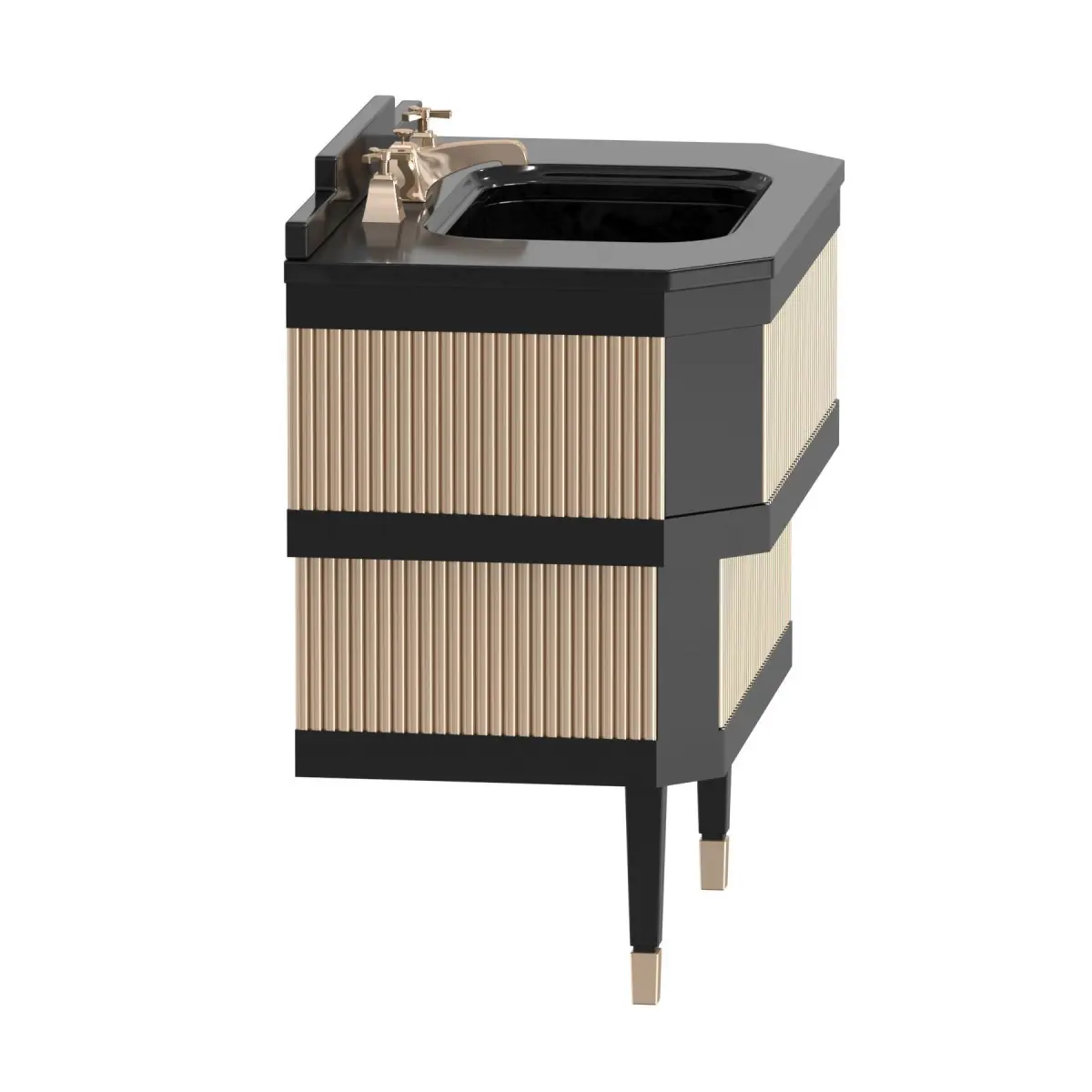 METROPOLITAN By Devon&DevonTypeFloor-standing single vanity unitManufacture year2023Product codeMETRMETROPOLITAN is a floor-standing single vanity unit that combines equisite raw materials, refined crafting techniques and a unique style that distils and reinterprets in a new way the best of early 20th century European design make this vanity unit a veritable jewel for the bathroom. The elegant structure in polished lacquered wood supports the marble top (available in Bianco Carrara, Granito Nero Assoluto, Calacatta Borghini or Nero Marquinha) and frames the brass slats, customisable in various finishes and also available in lacquered wood.