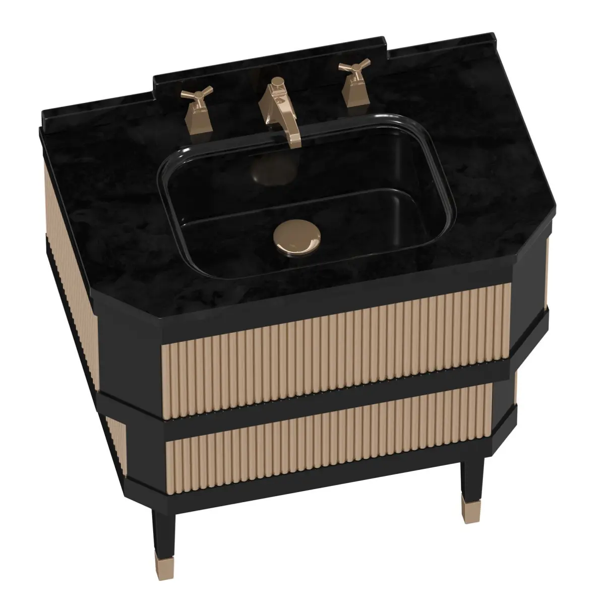 Marble top or Absolute Black GraniteMarble with a protective finishBorders Deep BlackSlats Pure WhiteLacquering glossyMatching washbasins Swindon white3 tap holesTrap.Further info from manufacturer on METROPOLITAN Devon&DevonDimensionsW 88,5 x D 53,3 x H 95 cm