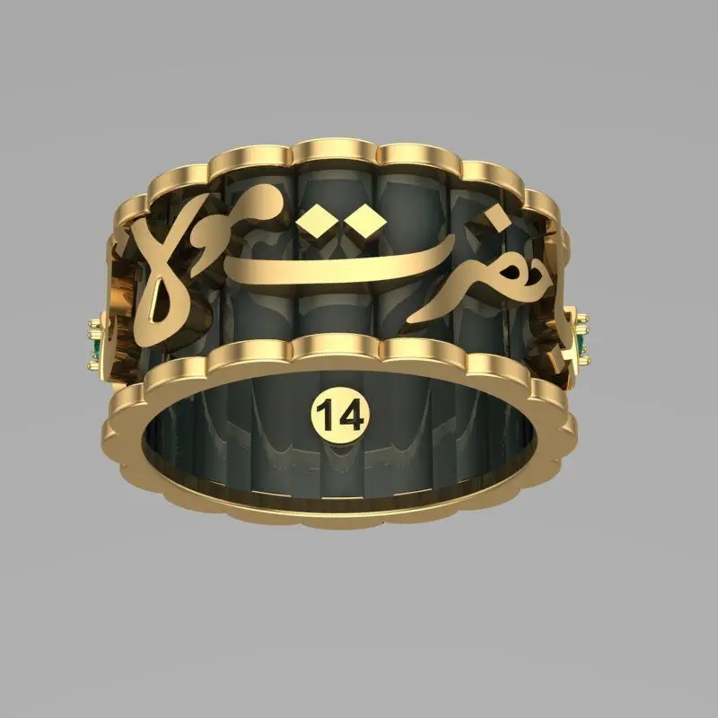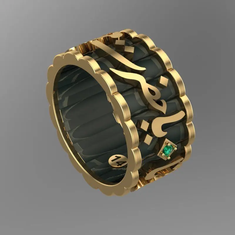 This special ring design reflects the concept of Mevlana's ascension to the heavens. The Arabic inscriptions on the design carry deep meanings and spirituality. Symbolizing Mevlana's ascent, this design blends spiritual depth with aesthetic beauty. Every detail of this ring is meticulously crafted to convey both a spiritual meaning and to be used as an elegant accessory. Representing a commitment to Mevlana's teachings and spiritual journey, this ring can also be seen as a spiritual gift or a special keepsake.