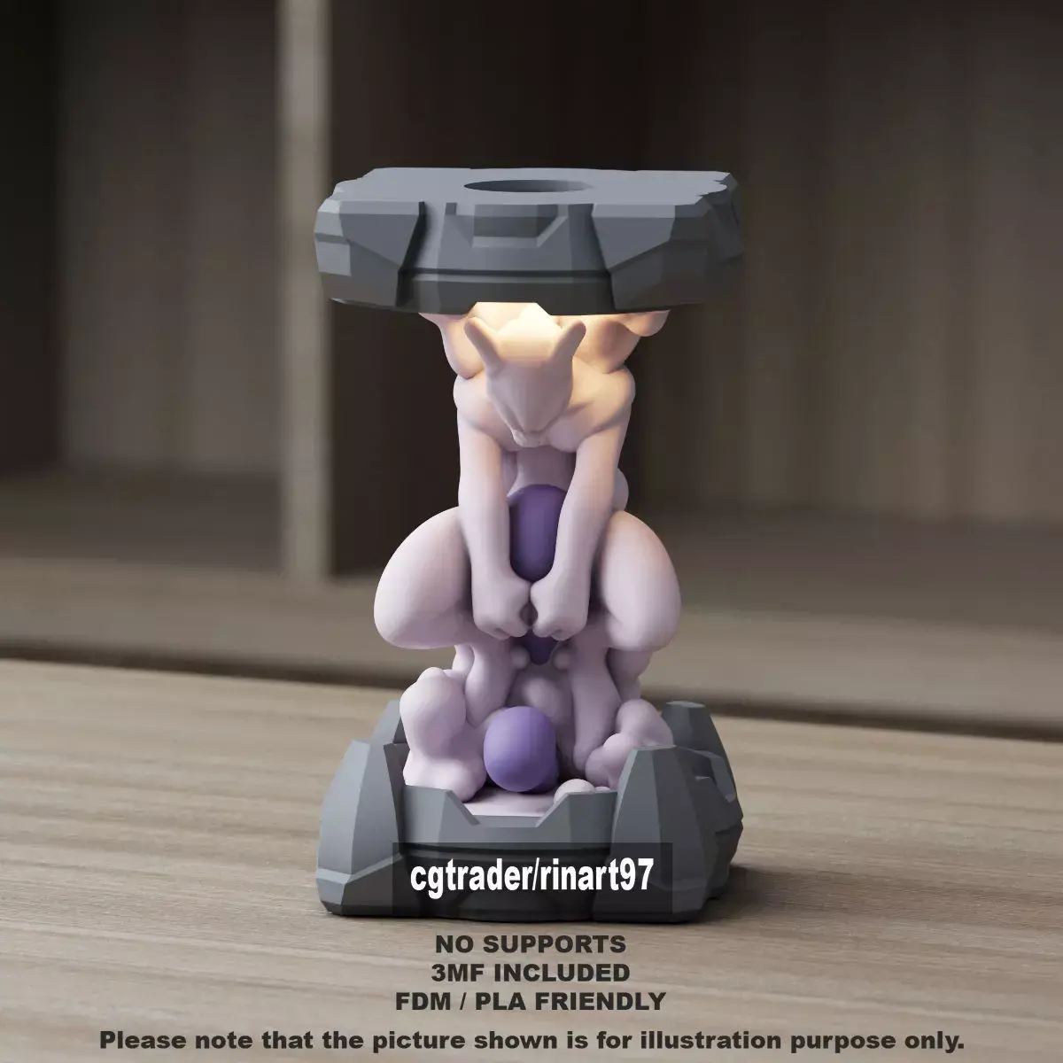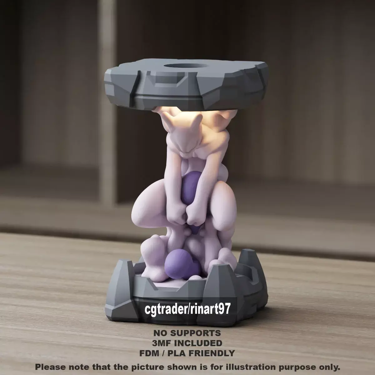 NOTE:*All parts are designed to print without supports.*Includes a multi-color 3MF file.*Features an internal cavity for installing an LED light.Mewtwo in the Clone Lab