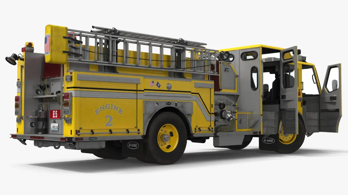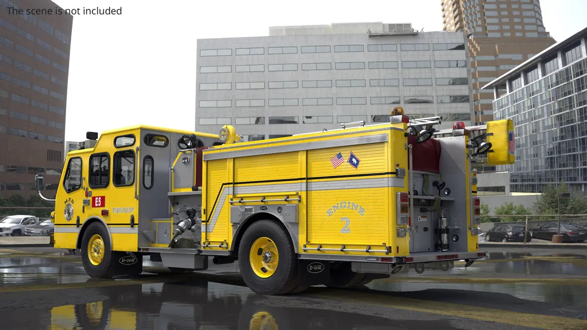 MFD Engine 2 Fire Rescue Vehicle Yellow Rigged is a three-dimensional model of fire and rescue truck, designed for emergency response operations.