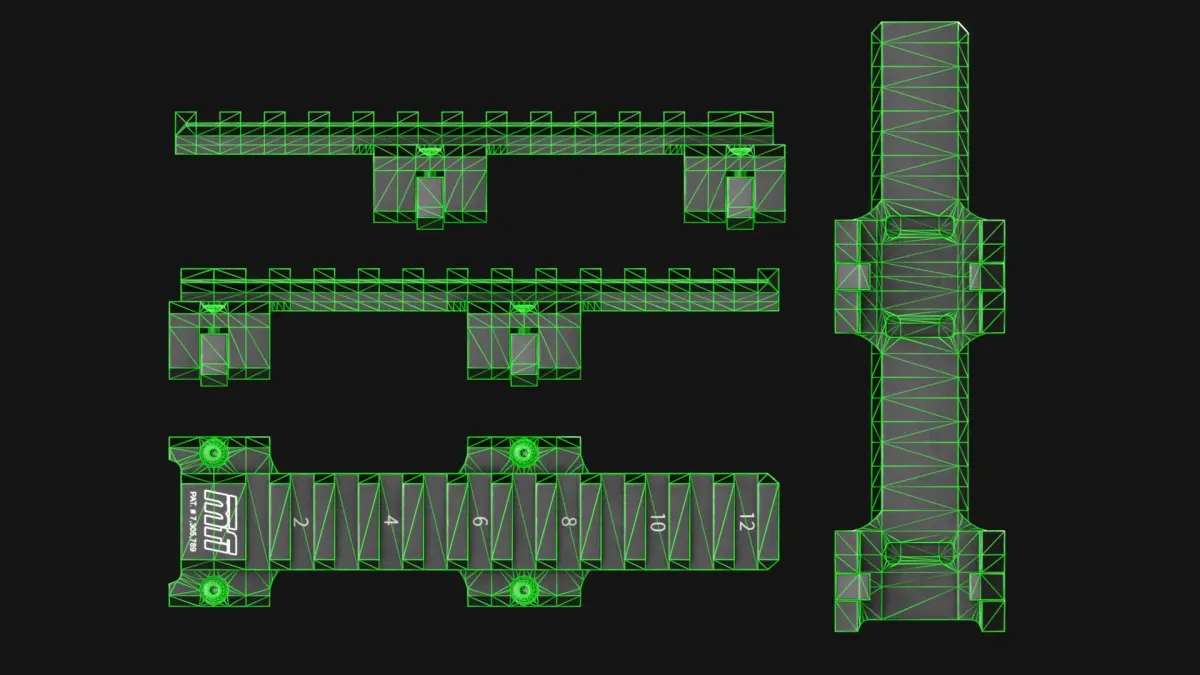 MFI Optic Rail Clamp designed for the HK platform, 12 picatinny rail slots for mounting optic sights. Compatible with MP5, G3, HK91, HK33, HK51 weapons. Low poly game asset.Please note that proportions may not be 100% correct. This model isn't made for 3D printing, it's a low poly asset made for use in games. The gun in the renders is not included in this purpose.