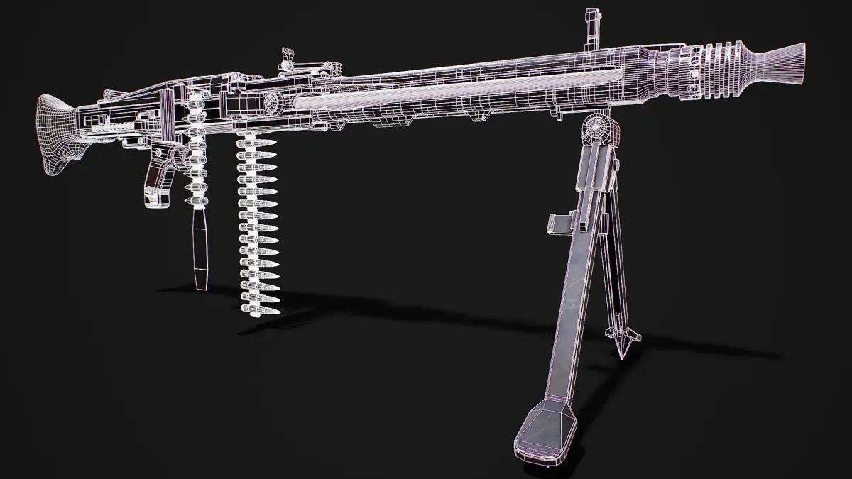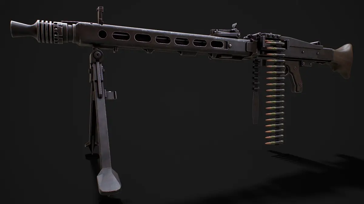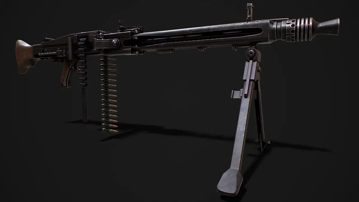 Hello. This is a high definition quality polygon of a MG-42 3d model with PBR textures. Extremely detailed and realistic. Suitable for movie prop, architectural visualizations, advertising renders, games and other. The model contains 114 objects: bipod base, bolt cap, bullet_21, case_21, case_holder_31, end plate, Left bipod, machine gun, reload handle, reload rod, Right bipod, spring_32, trigger. The archive includes Obj and FBX, textures for the Unity: Base color, Metallic, Mixed AO, Normal_OpenGL, Roughness. And also included in the archive textures for UE: BaseColor, Normal, OcclusionRoughnessMetallic. Scene contains 13 materials. If you need, we will make a file of this model for 3D printing especially for you. Original file size: 2.84 GB. Archive file size: 709 MB.