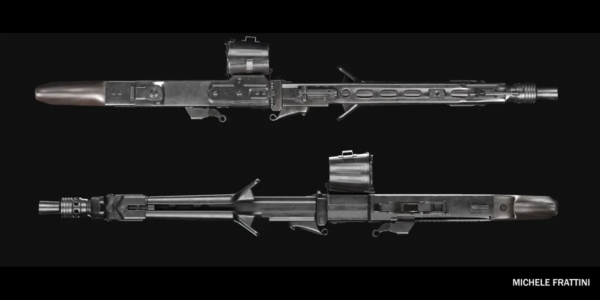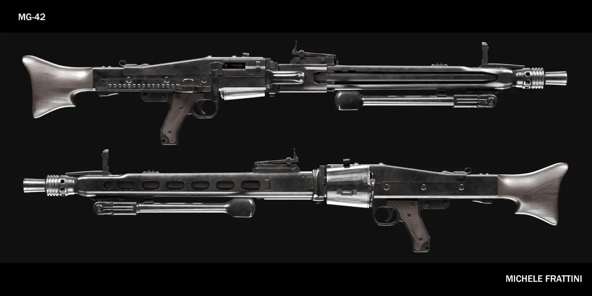 Realistic 3D model of the MG42 machine gun, created with OpenSubdiv technology and tris compatibility. Perfect for games, rendering, and animations with clean topology and accurate details.