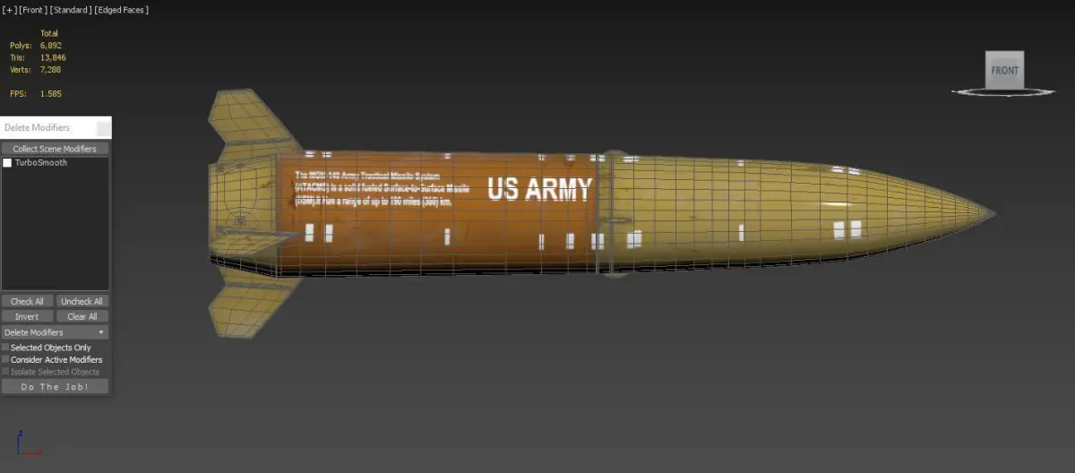 MGM-140-164-168 Army Tactical Missile System is a high quality, photo realistic 3d model that will enhance detail and realism to any of your rendering projects. The model has a fully textured, detailed design that allows for close-up renders, and was modeled in 3ds Max 2018 also has 3ds Max 2015 version and rendered with V-Ray. Renders have no post-processing.
