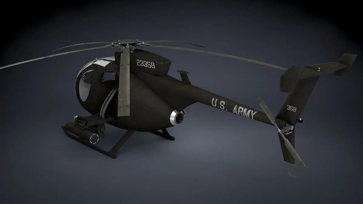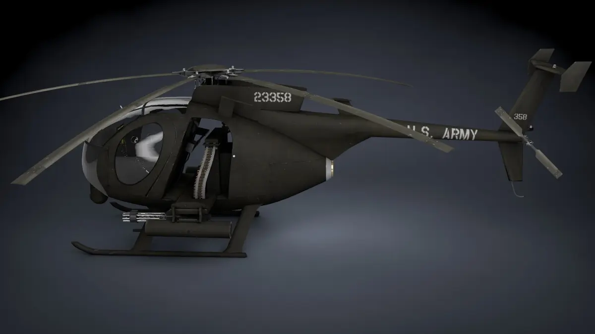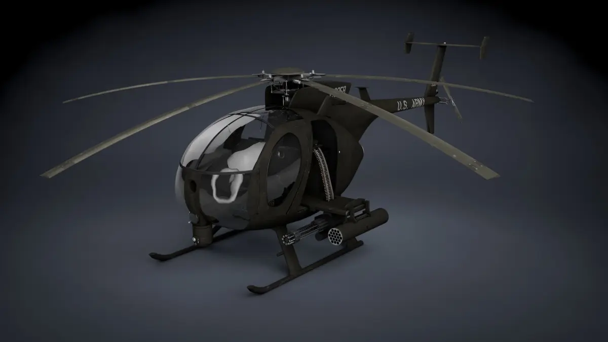 The MH-6 Little Bird (nicknamed the Killer Egg), and its attack variant AH-6, are light helicopters used for special operations in the United States Army. Originally based on a modified OH-6A, it was later based on the MD 500E, with a single five-bladed main rotor.