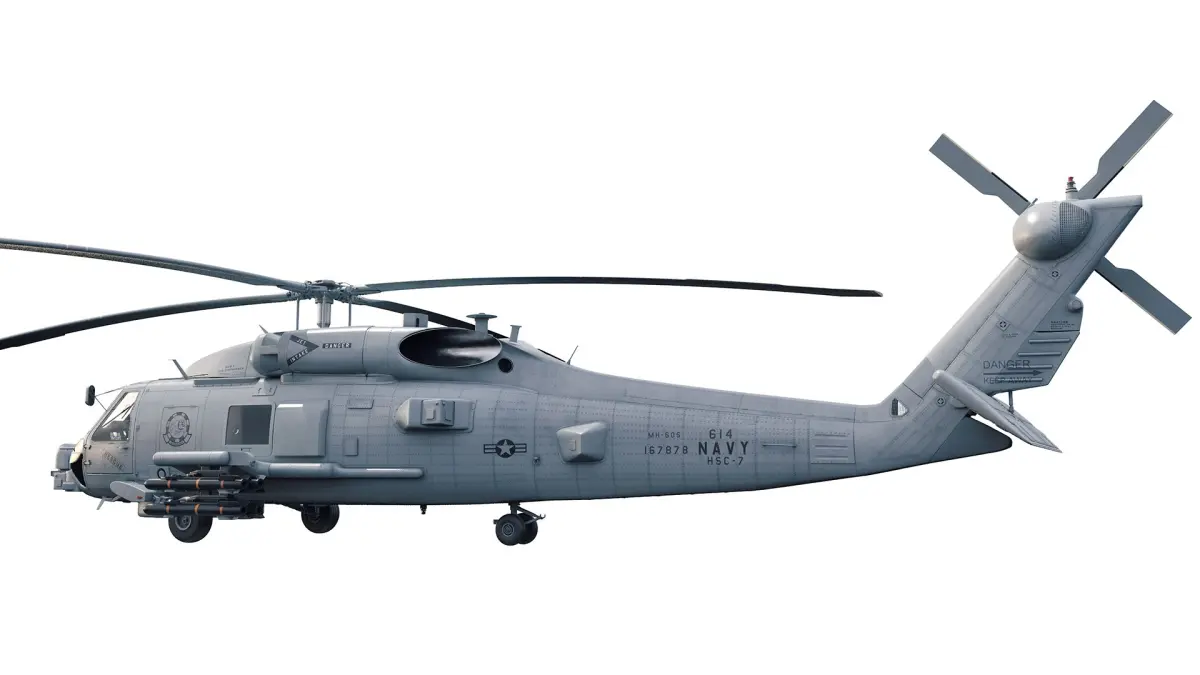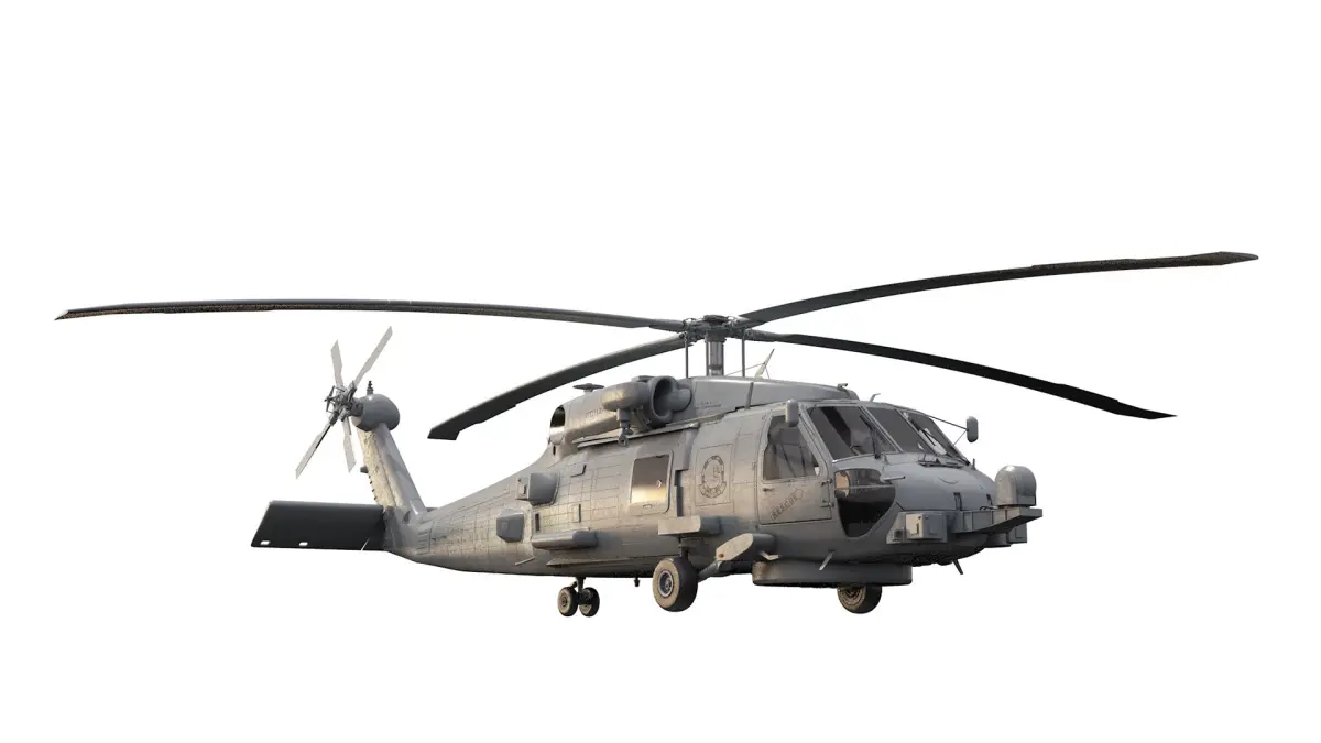 A highly detailed model of an MH-60R Seahawk helicopte.