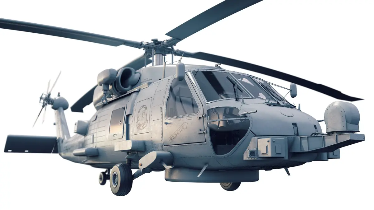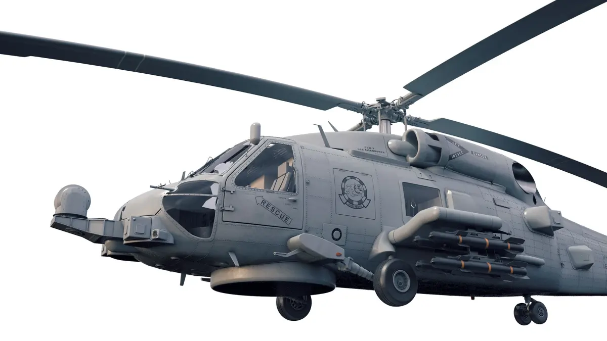 A highly detailed model of an MH-60R Seahawk helicopter with complete interior included.