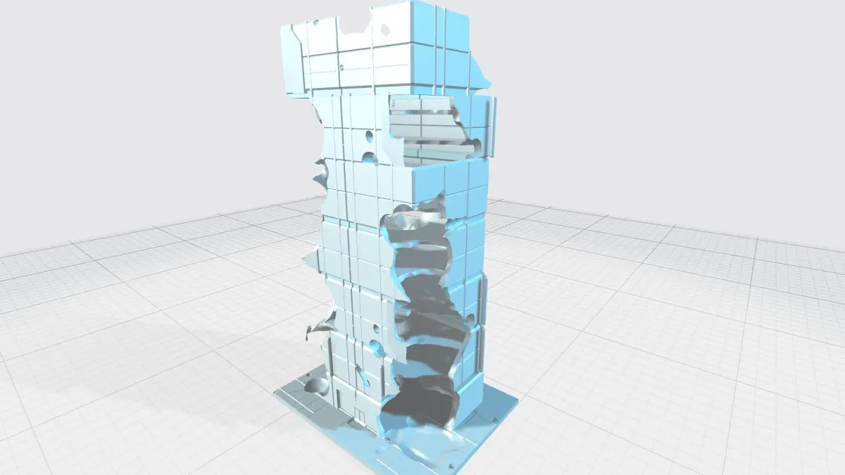A Sci-Fi Multi-function Building Model with exploded aftermath scene. Fondation for making model scene of MS battle ;
