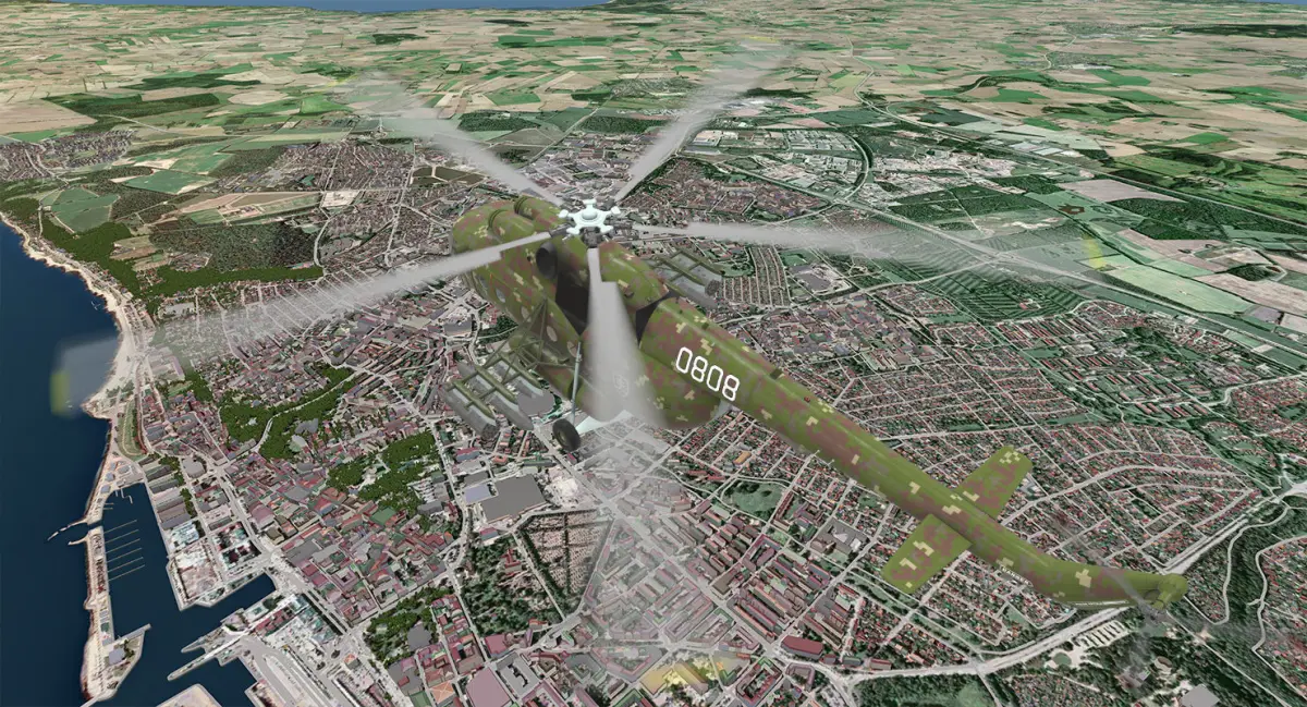 - Main rotor: blades bend, rotation, pitch, bank, blades switching (static to motion blur)