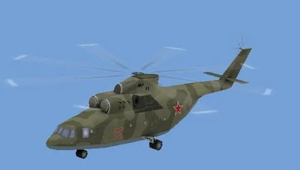 Low polygon model of the Mi-26 This model is used by some of the air forces simulators. A lot of emphasis has been made to find the correct reference material. The model's shape has been verified to have the correct shape for aircraft recognition training. Pictures are taken within the simulation world. Contains LOD's (Level-Of-Details)