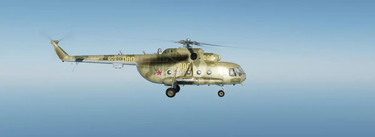 A detailed Mi-8/Mi-17-style medium transport helicopter model, featuring a classic military camouflage paint scheme and authentic exterior markings. The asset is built with clean proportions and recognizable silhouette, making it suitable for real-time games, simulators, VR/AR, cinematics, and military-themed environments.