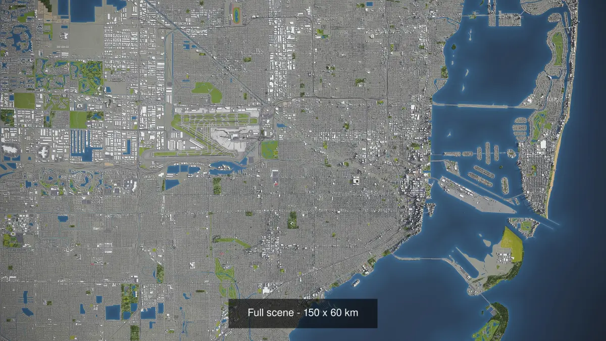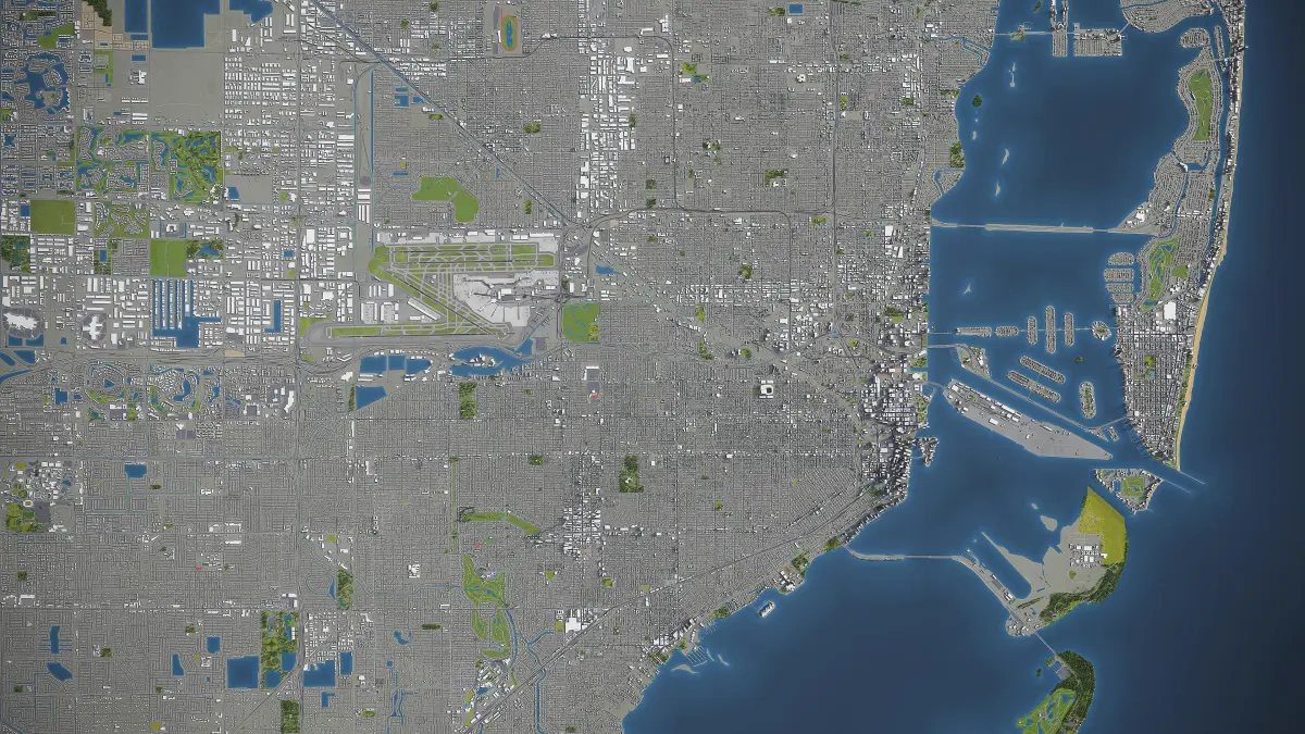 This is exact and accurate to scale 3D city model of Miami metropolitan area based on GIS data (April 2020)