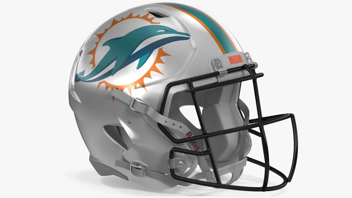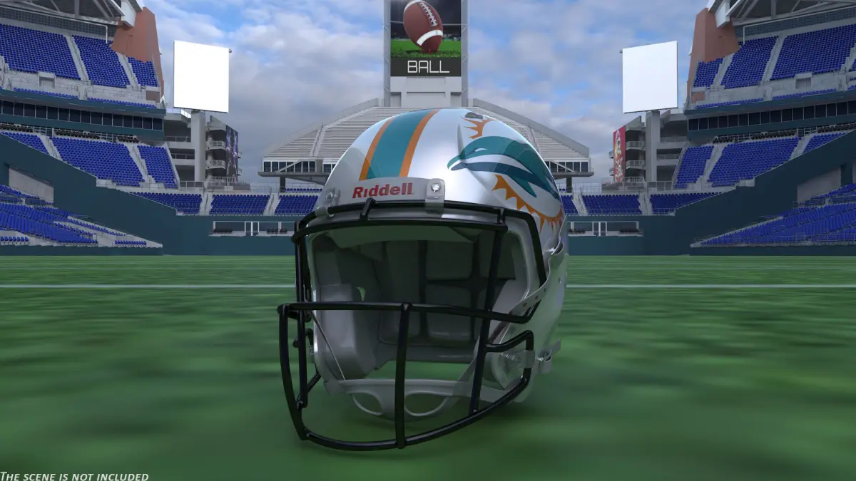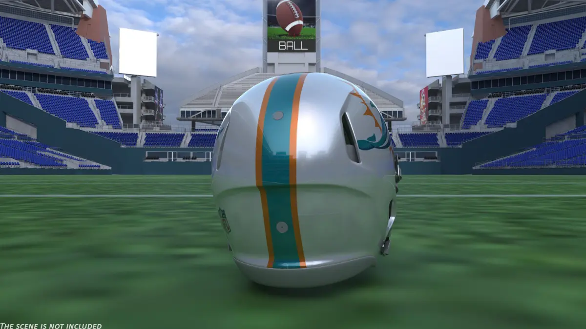 Miami Dolphins American Football Helmet is a three-dimensional model of a headwear part of protective equipment which used in American football.