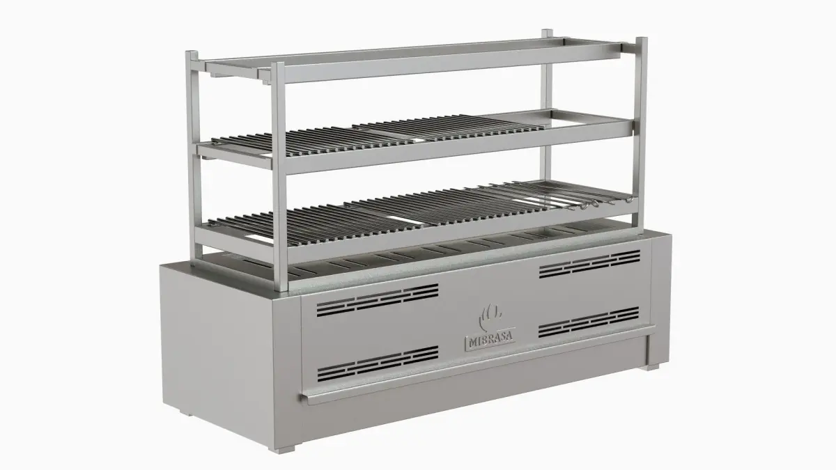 Size 1045*445*8003D model of a multi-tier open charcoal grill equipped with accessories toperform a range of cooking techniques using grills, Teppanyaki hot plates or skewers. Robata grilling lends to an arrayof foods from meat, fish, seafood and vegetables, impartinglight smoky aromas and flavors we seek in grill cooking.Originating from the Japanese tea ceremony, which overtimefound its way to the north Japanese fishermen utilizing thismethod to keep food hot while out at sea for long periods.The evolution of the Robatayaki has brought it into the modern kitchen, where chefs prepare the food and display theirshowmanship in front of diners allowing them to take part inthe entire cooking experience.QUALITY AND CONSTRUCTIONThe MIBRASA® Robatayaki is manufactured with steels ofthe latest technology following the most rigorous qualitycontrols.